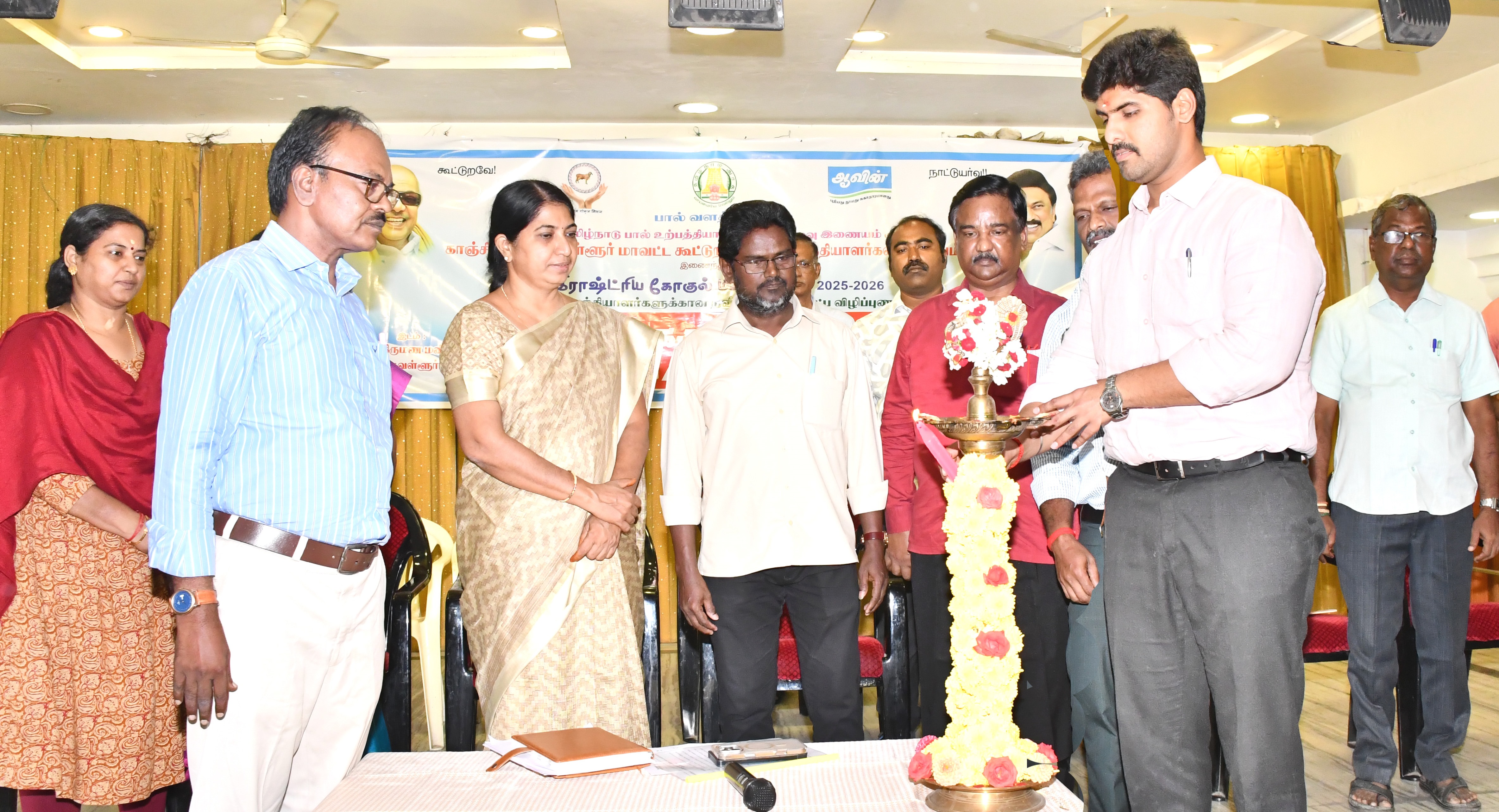 திருவள்ளூரில் பால் உற்பத்தியாளர்களுக்கான நவீன தொழில்நுட்ப விழிப்புணர்வு மாபெரும் கருத்தரங்கு முகாம் : மாவட்ட ஆட்சியர் மு.பிரதாப் குத்துவிளக்கு ஏற்றி துவக்கி வைத்தார் :