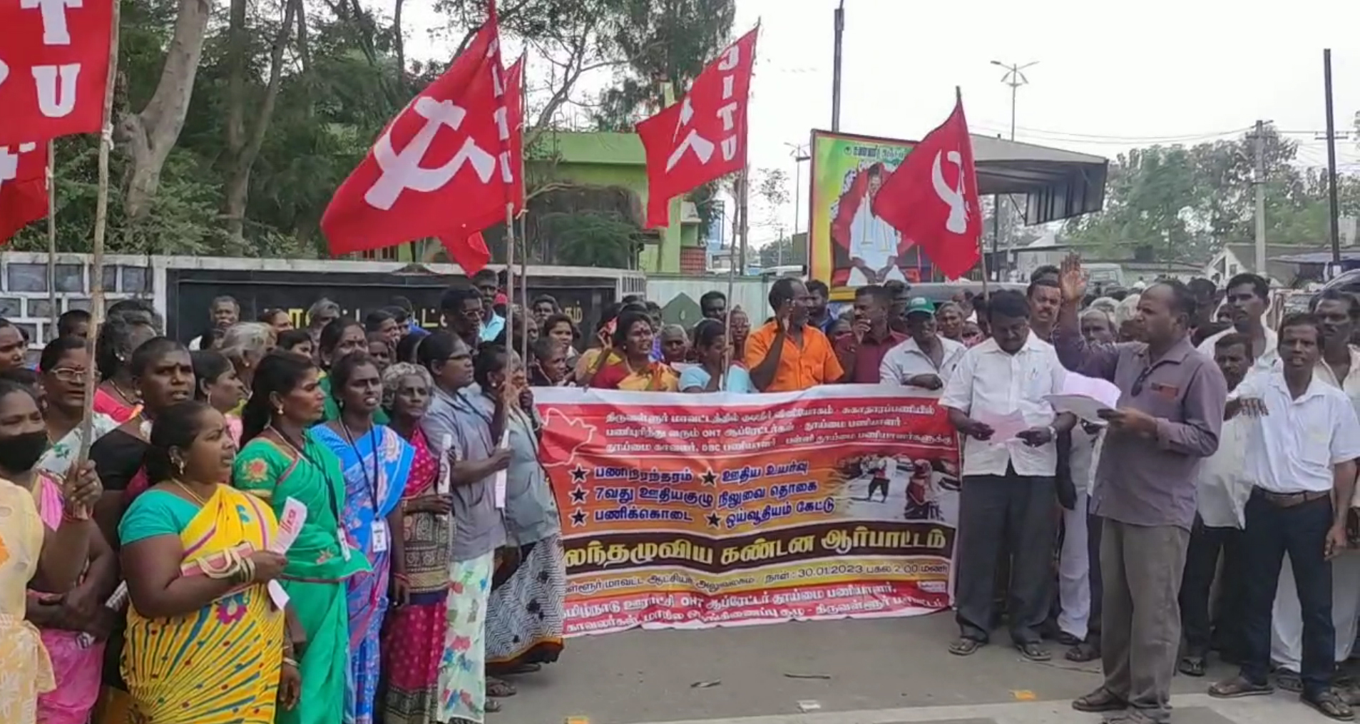 சிஐடியு சார்பில் திருவள்ளூர் மாவட்ட ஆட்சியர் அலுவலகத்தை முற்றுகையிட்டு ஆர்ப்பாட்டம்