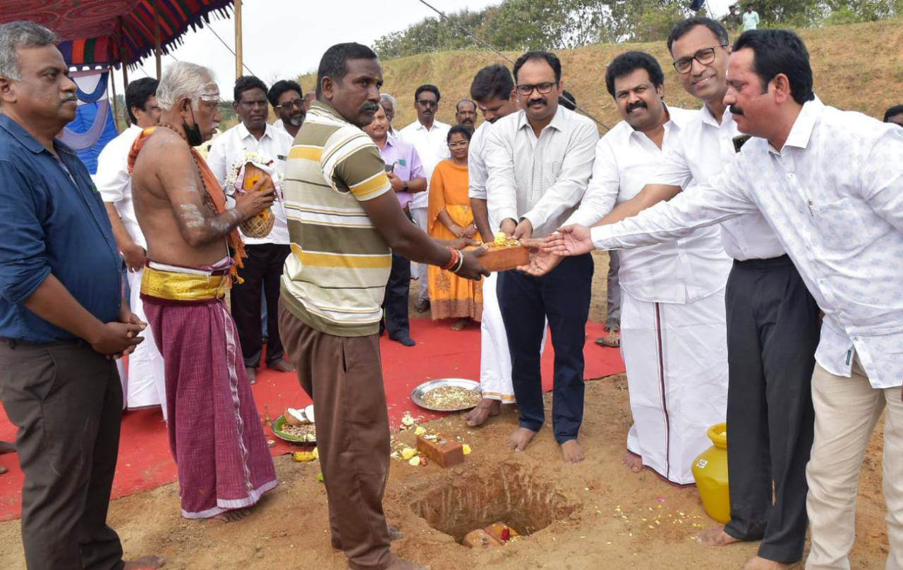 கூவம் ஆற்றின் குறுக்கே நீர்வளத் துறை மூலம் ரூ.17.70 கோடி மதிப்பீட்டில் புதிய தடுப்பணை கட்டுவதற்கான பணிகள் : மாவட்ட ஆட்சியர் ஆல்பி ஜான் வர்கீஸ் அடிக்கல் நாட்டி துவக்கி வைத்தார்