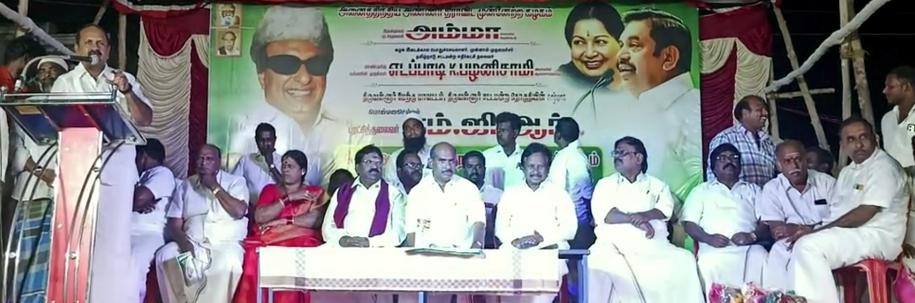 திருவாலங்காட்டில் திருவள்ளூர் மேற்கு மாவட்ட அதிமுக சார்பில் புரட்சித்தலைவர் எம்ஜிஆரின் 106 வது பிறந்தநாள் விழா பொதுக்கூட்டம் : அதிமுக ஆட்சியில் 35 லட்சம் பேருக்கு வழங்கப்பட்ட ஓய்வூதியம் 15 லட்சமாக குறைத்து வழங்குவதாகவும் முன்னாள் அமைச்சர் பி வி ரமணா குற்றச்சாட்டு :