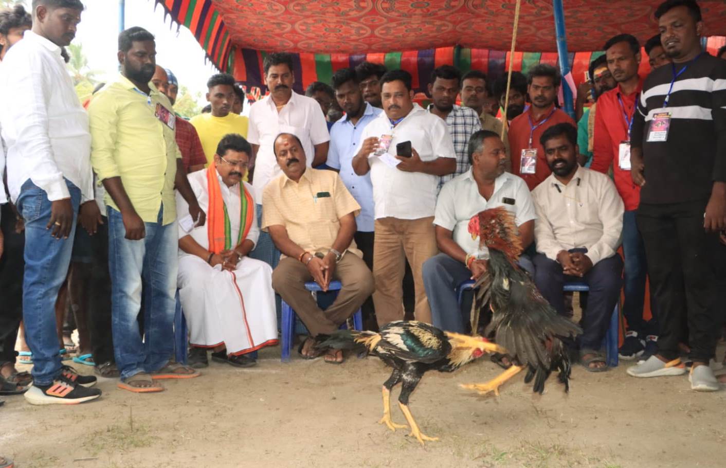 பொங்கல் பண்டிகையை முன்னிட்டு உயர் நீதிமன்ற சிறப்பு அனுமதியுடன் திருவள்ளூர் அடுத்த தங்கானூர் கிராமத்தில் சேவல் சண்டை :