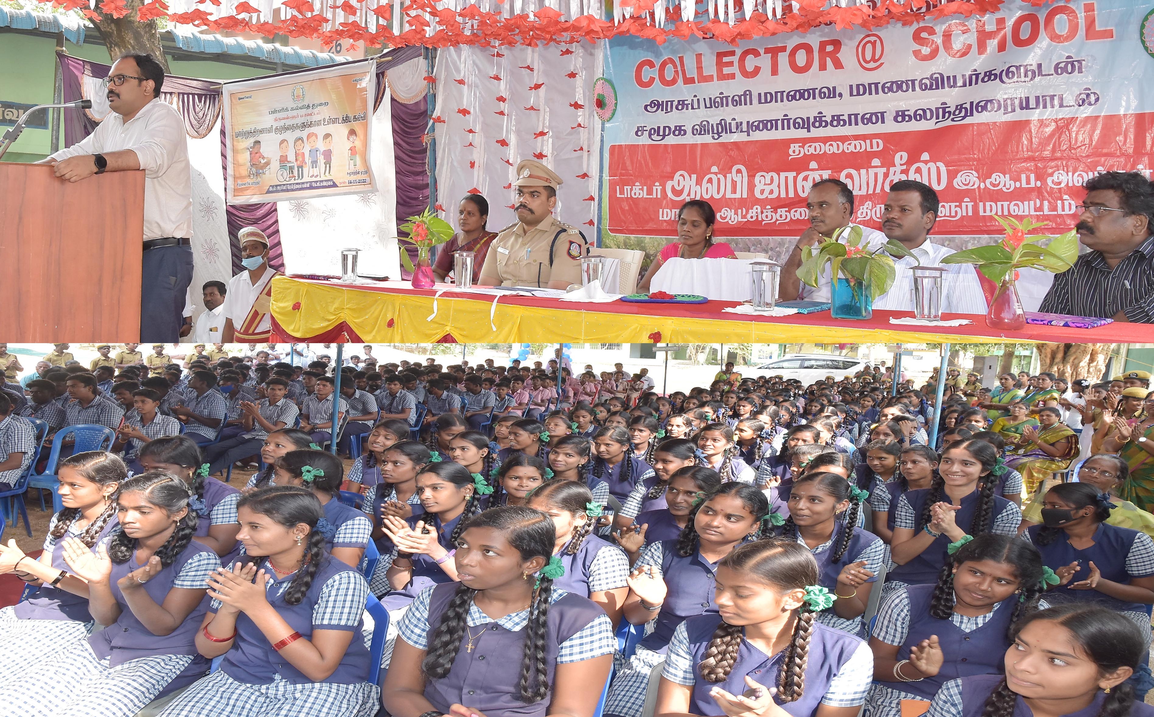 கே.ஜி.கண்டிகை அரசு மேல்நிலைப் பள்ளியில் மாணவ- மாணவியர்களிடையே போதைப் பொருள் ஒழிப்பு குறித்து Collector@School என்ற சமூக விழிப்புணர்வு கலந்துரையாடல் நிகழ்ச்சி :
