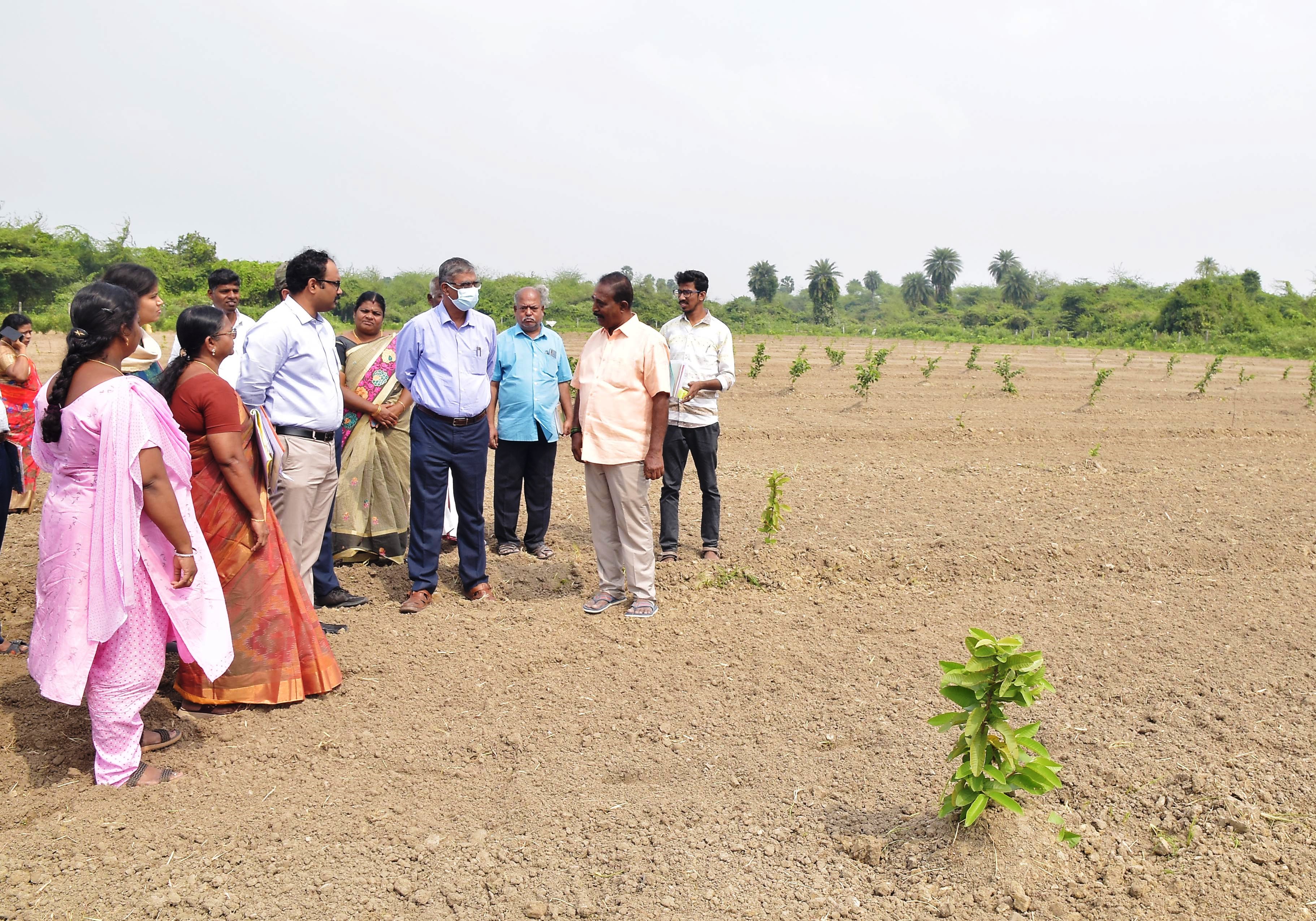 பிரையாங்குப்பம் ஊராட்சியில் பயிரிடப்பட்டுள்ள 277 எண்ணிக்கையிலான கொய்யா லக்னோ - 49 ரக செடிகளை மாவட்ட கண்காணிப்பு அலுவலர் வி.இராஜாராமன் மற்றும் மாவட்ட ஆட்சியர் ஆல்பி ஜான் வர்கீஸ் ஆகியோர் நேரில் ஆய்வு :