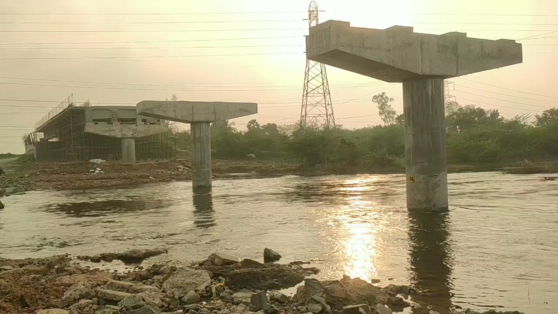 மேலானூர் - மெய்யூர் கொசசஸ்த்தலை ஆற்றின் குறுக்கே கட்டப்பட்டு வரும் உயர்மட்ட பாலம் பணிகள் ஆமை வேகத்தில் நடைபெறுவதால் பொதுமக்கள் அவதி :