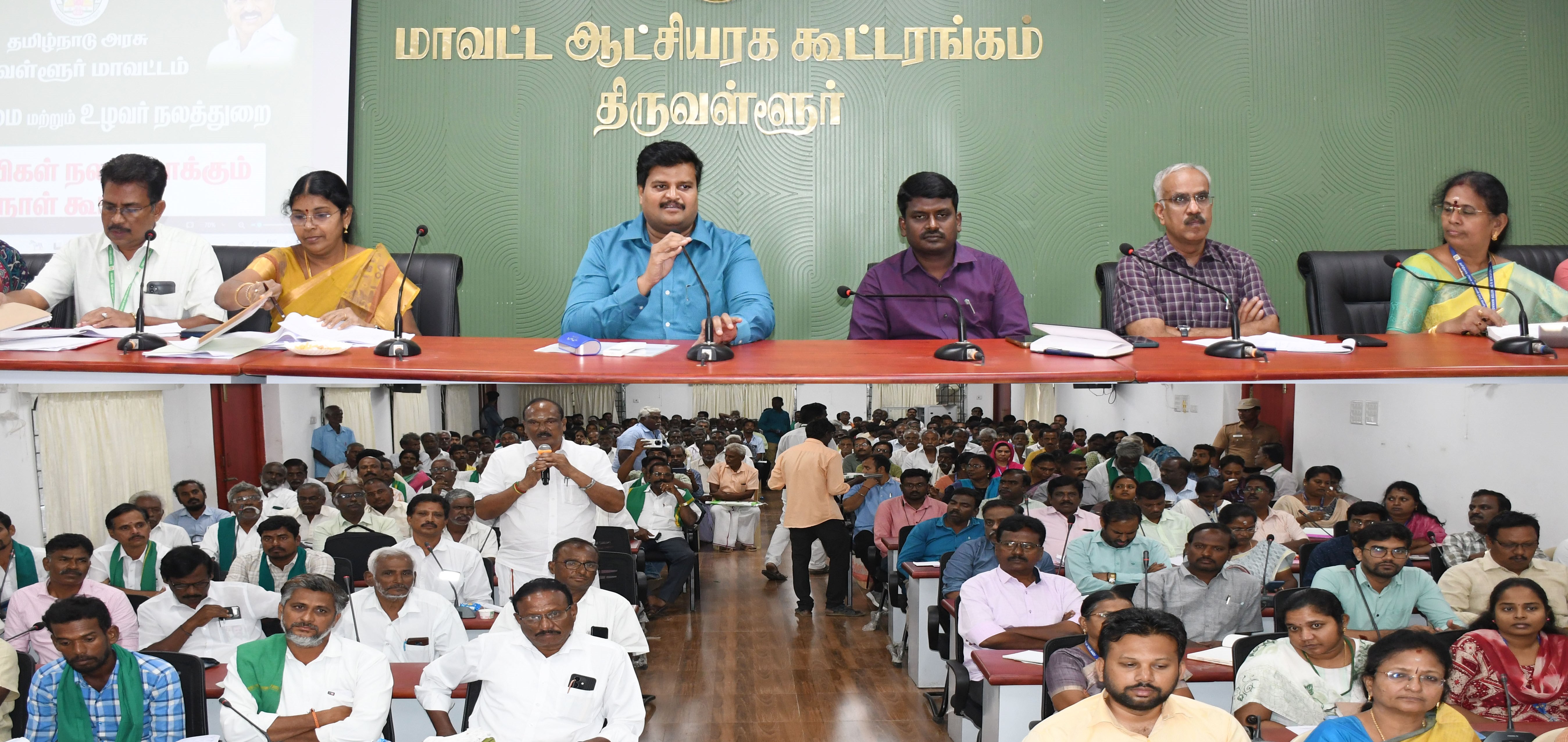 திருவள்ளூர் மாவட்ட ஆட்சியர் அலுவலக கூட்டரங்கத்தில் வேளாண்மை மற்றும் உழவர் நலத்துறை சார்பாக விவசாயிகள் நலன் காக்கும் நாள் கூட்டம் :