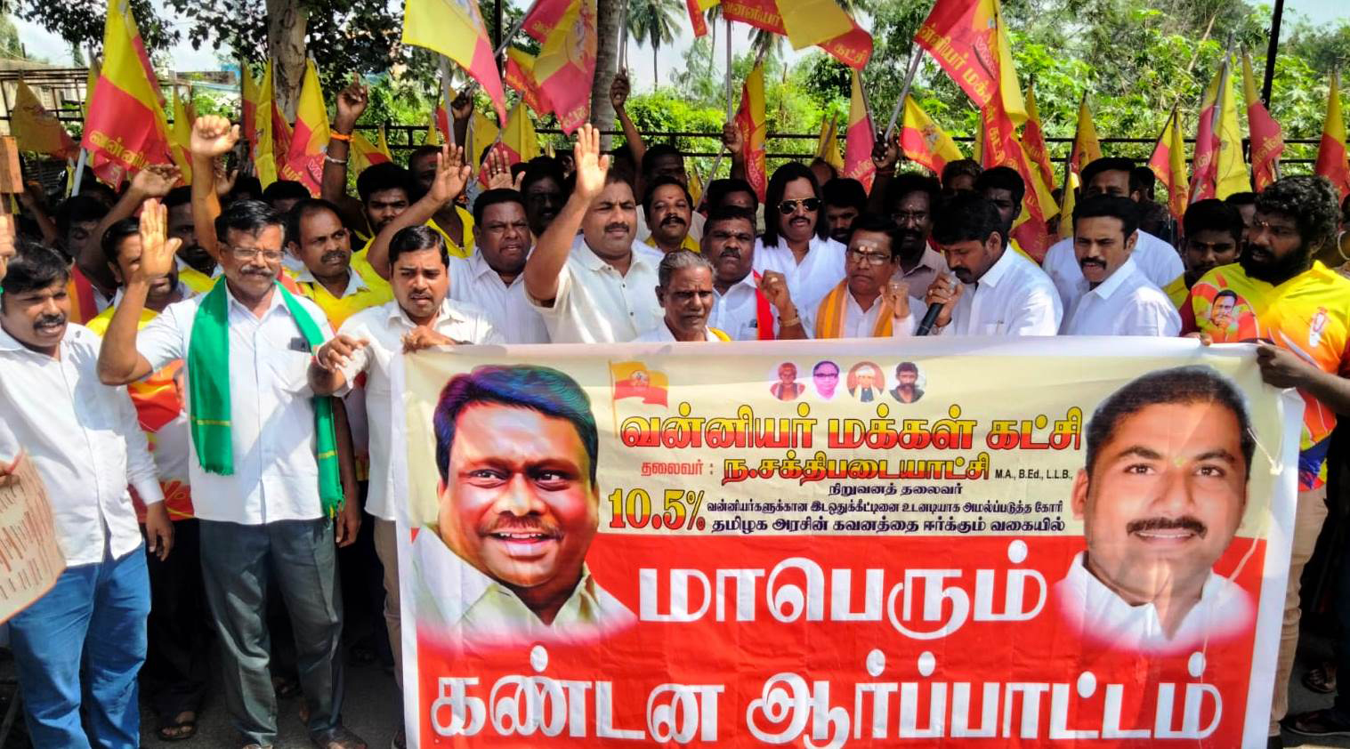 வன்னியர் மக்கள் கட்சி சார்பில் 10.5 சதவிகித இட ஒதுக்கீடு அமல்படுத்தக் கோரி திருவள்ளூரில் கண்டன ஆர்ப்பாட்டம்