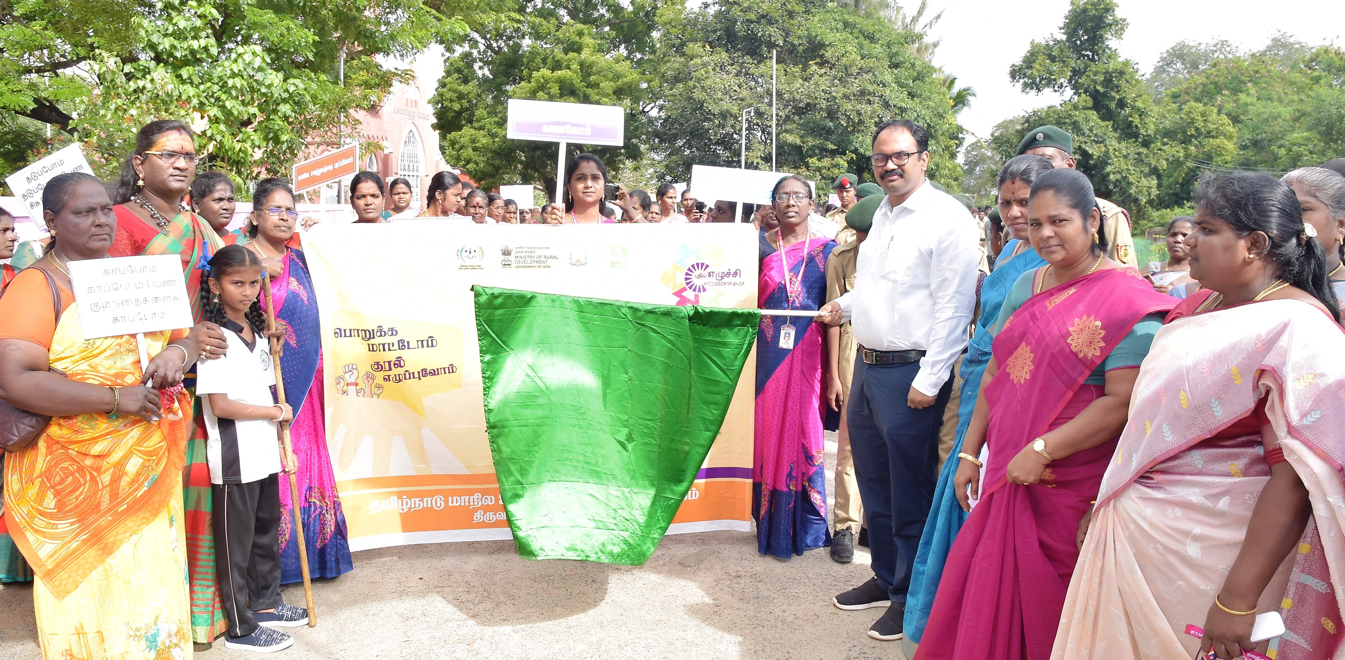 திருவள்ளூரில் தமிழ்நாடு மாநில ஊரக வாழ்வாதார இயக்கம் சார்பாக பெண்களுக்கு எதிரான வன்முறை ஒழிப்பு பேரணி : மாவட்ட ஆட்சியர் ஆல்பி ஜான் வர்கீஸ் கொடியசைத்து துவக்கி வைத்தார்