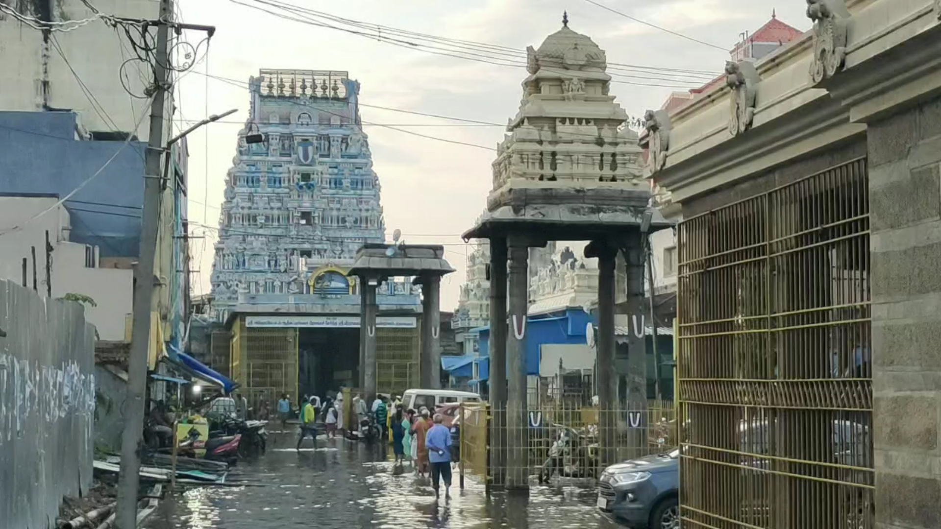 திருவள்ளூர் வீரராகவர் கோவில் வளாகத்தில் கழிவு நீருடன் மழை நீரும் கலந்து தேங்கி இருப்பதால் பக்தர்கள் கோயிலுக்குள் செல்வதில் சிரமம்