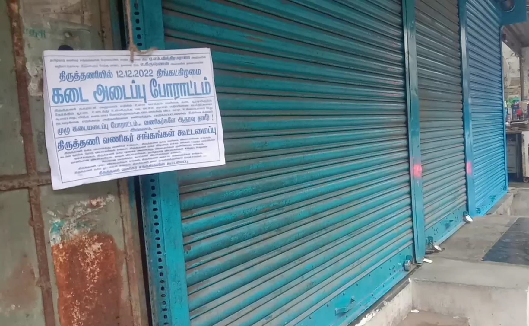 திருத்தணியில் திமுக பிரமுகருக்கு கடையை வாடகைக்கு விட வேண்டும் என்பதற்காக மளிகை கடையின் பூட்டை உடைத்து பொருட்களை சூறையாடியவர்கள் மீது நடவடிக்கை எடுக்க கோரி வியாபாரிகள் சங்கம் சார்பில் கடைகளை மூடி போராட்டம்