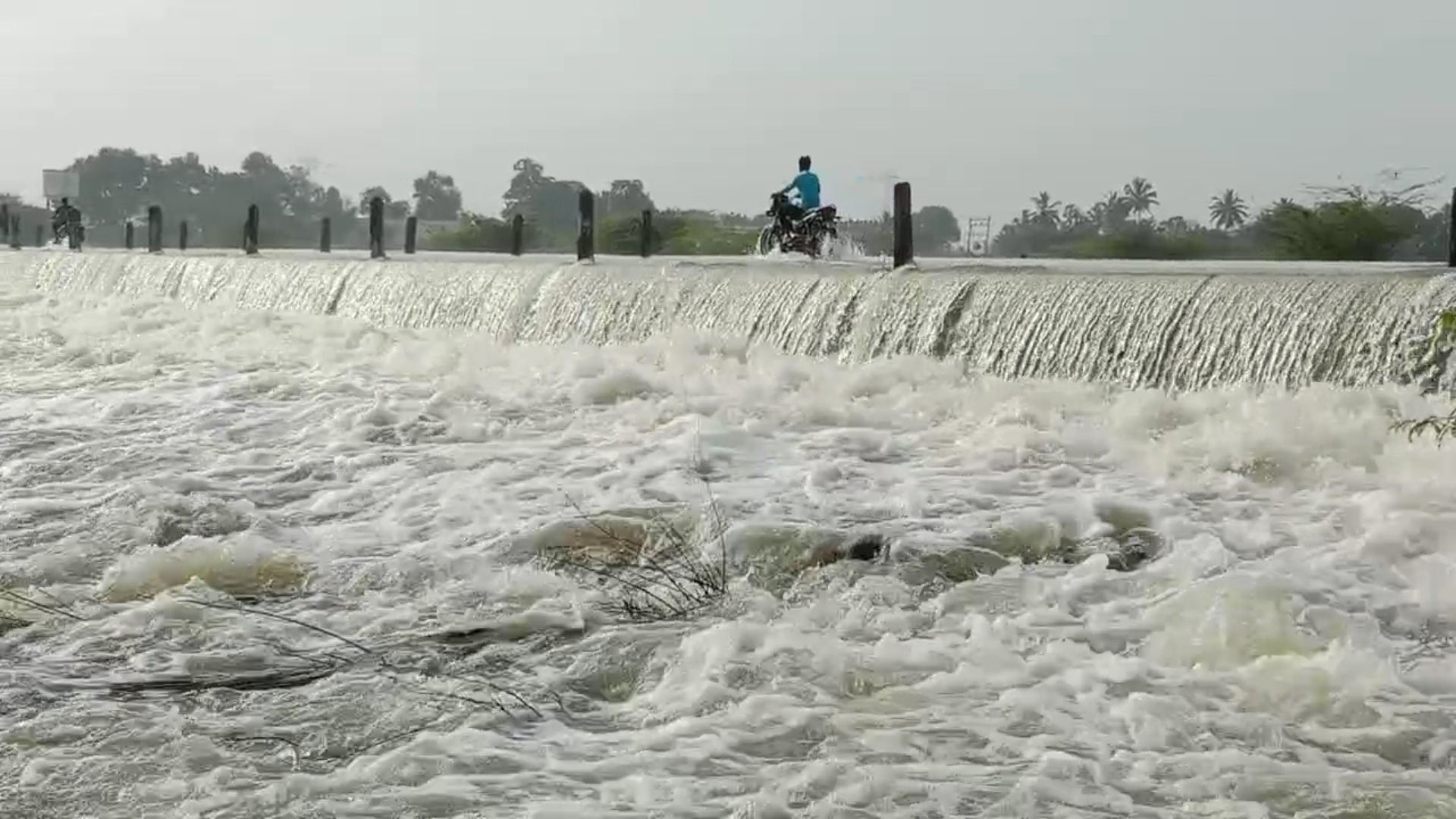 திருவள்ளூர் அருகே பாகசாலை கொசஸ்தலை ஆற்றில் வெள்ளப்பெருக்கு : ஆபத்தை உணராமல் ஆற்றைக் கடப்பதால் அசம்பாவிதம் ஏற்படும் அபாயம்