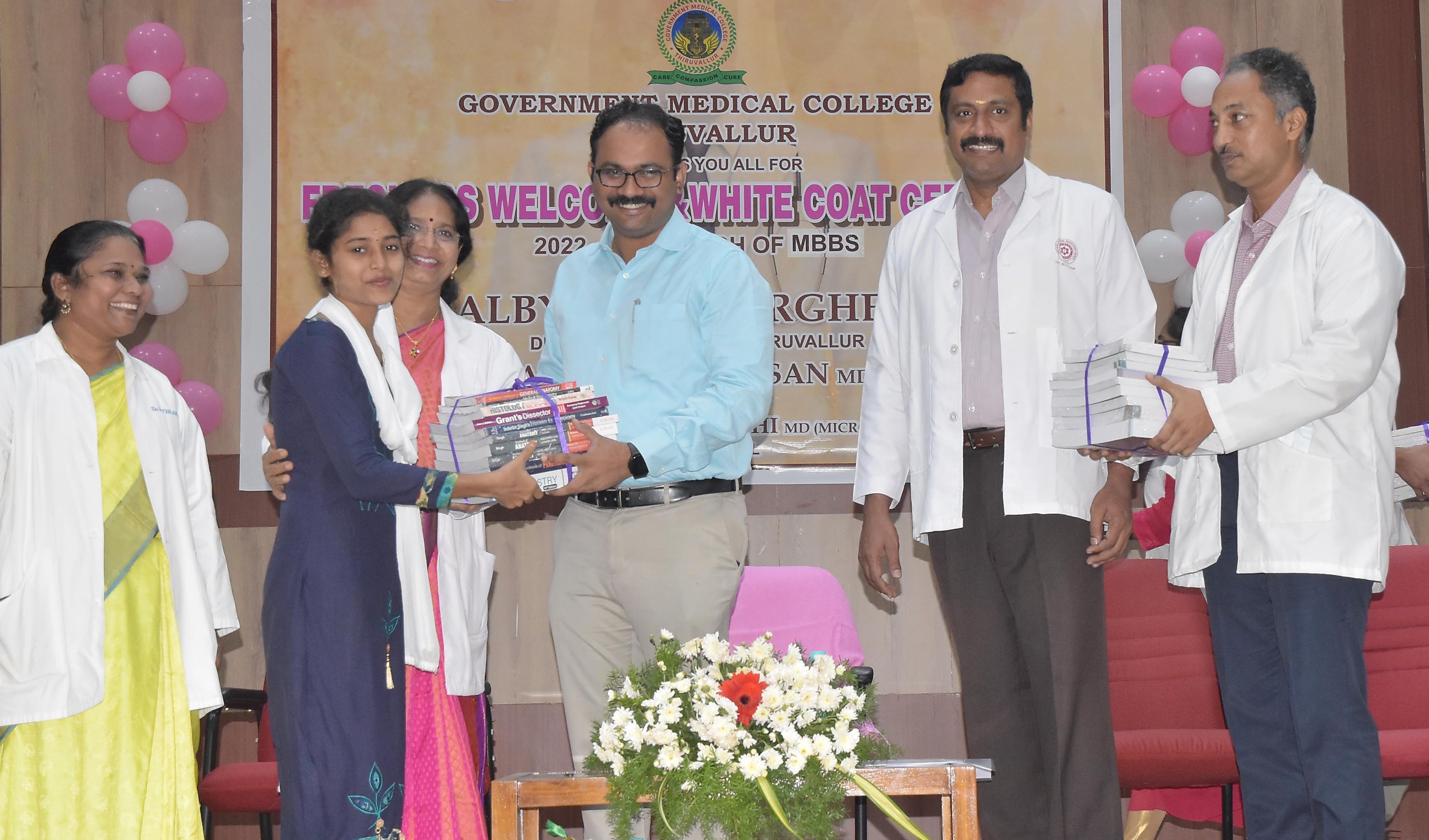 திருவள்ளூர் அரசு மருத்துவ கல்லூரியில் முதலாம் ஆண்டு மருத்துவ மாணவர்களுக்கான வரவேற்பு நிகழ்ச்சி : மாவட்ட ஆட்சியர் ஆல்பி ஜான் வர்கீஸ் மருத்துவ மாணவர்களை வரவேற்று மருத்துவ அங்கி மற்றும் பாடப்புத்தகங்களை வழங்கினார்