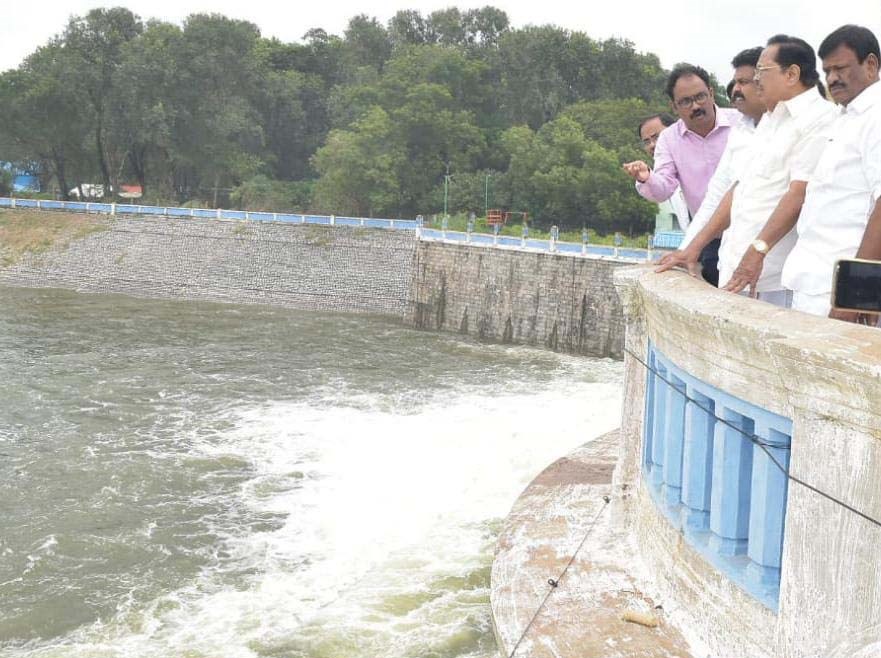 பூண்டி சத்தியமூர்த்தி சாகர் நீர்தேக்கம் மற்றும் புழல் நீர்த்தேக்கத்தின் இருப்பு நிலை மற்றும் மிகை நீர் வெளியேற்றம் குறித்து நீர்வளத்துறை அமைச்சர் துரைமுருகன், பால்வளத்துறை அமைச்சர் சா.மு.நாசர் ஆகியோர் நேரில் ஆய்வு