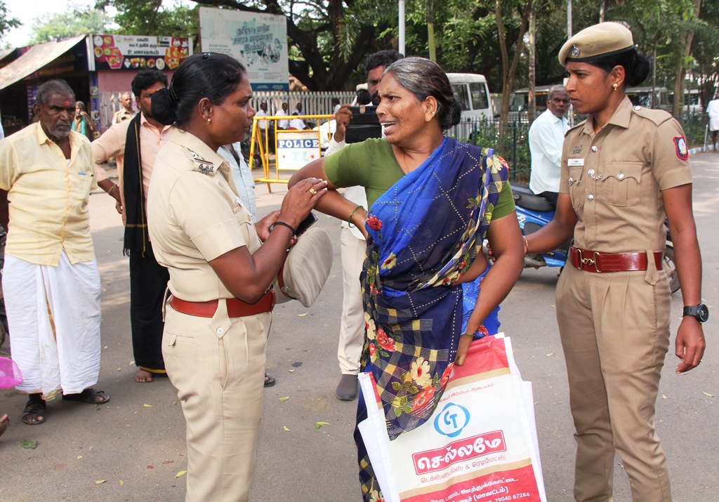 திருத்தணியில் சுற்றித்திரிந்த யாசகர்களை மீட்டு முதியோர் இல்லத்தில் சேர்த்த காவல் எஸ்.ஐ.,ராக்கிகுமாரி