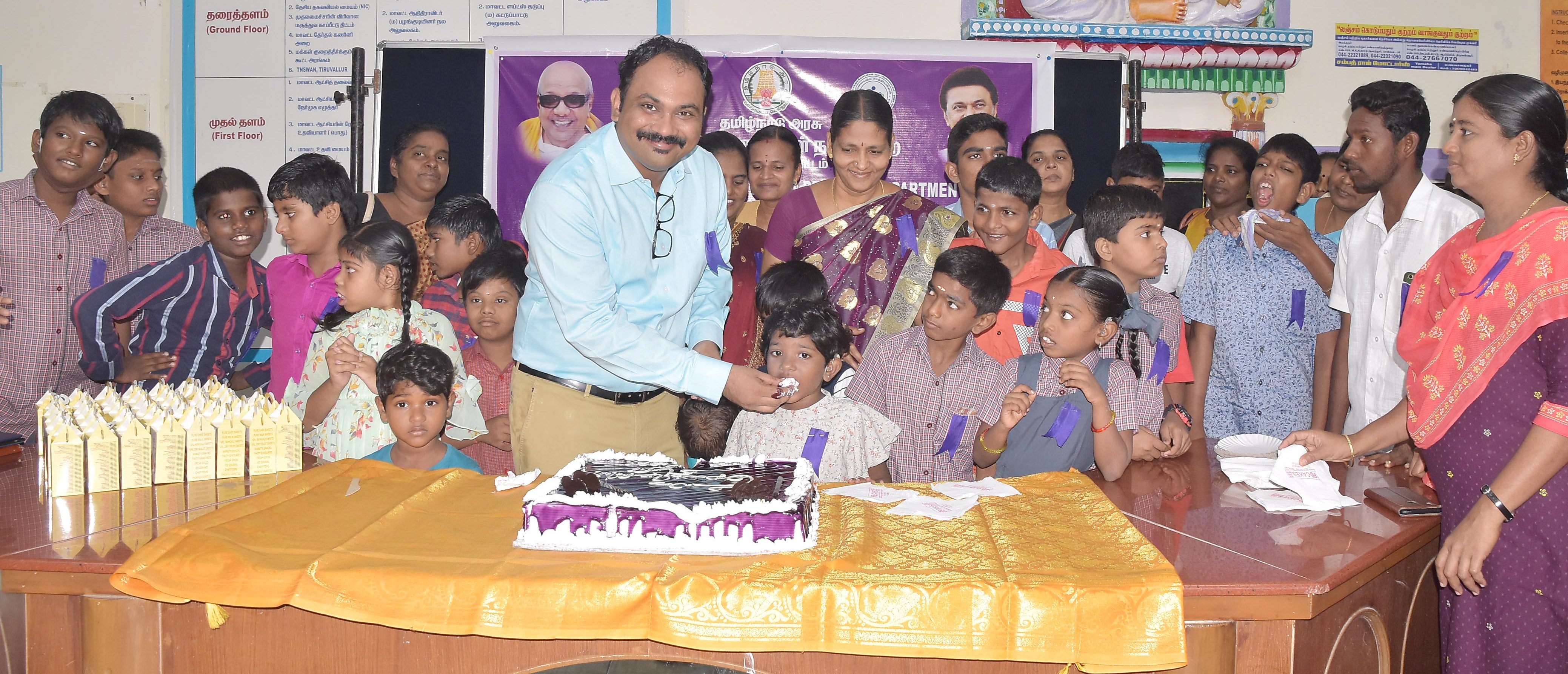 திருவள்ளூரில் சர்வதேச மாற்றுத்திறனாளிகள் தினத்தை முன்னிட்டு மாவட்ட ஆட்சியர் ஆல்பி ஜான் வர்கீஸ் மாற்றுத்திறனாளி குழந்தைகளுக்கு கேக் ஊட்டி மகிழ்ந்தார் :