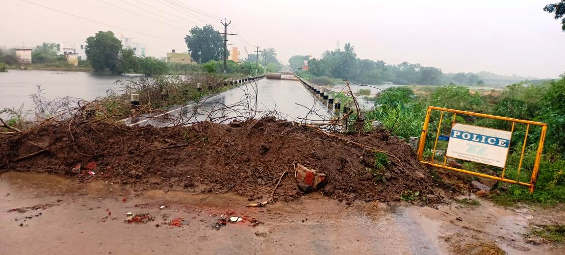 கூவம் ஆற்றில் ஏற்பட்ட வெள்ளப்பெருக்கால் தரை பாலம் சேதம் பொது மக்கள் அவதி