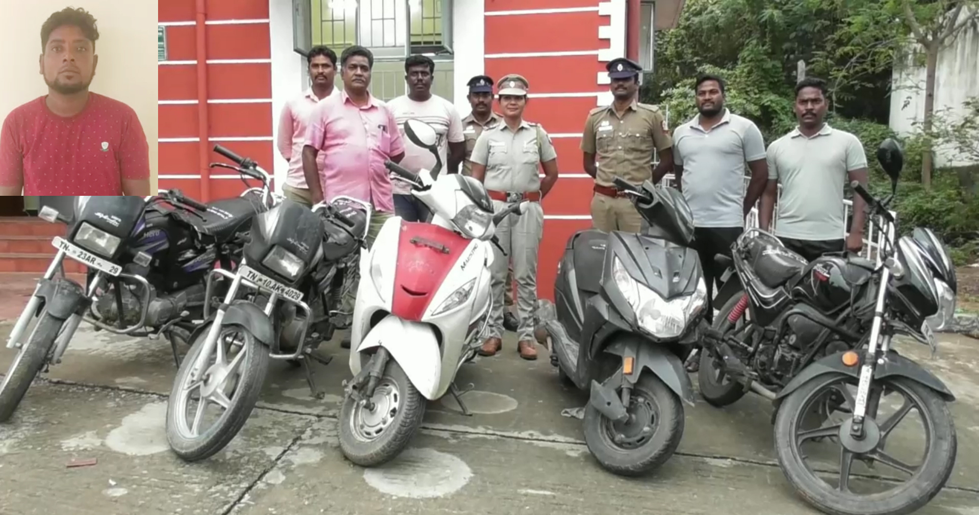 திருத்தணி பகுதியில் தொடர் இருசக்கர வாகன திருட்டில் ஈடுபட்டவர் கைது : 5 இருசக்கர வாகனங்களில் குற்றப்பிரிவு போலீசார் பறிமுதல்