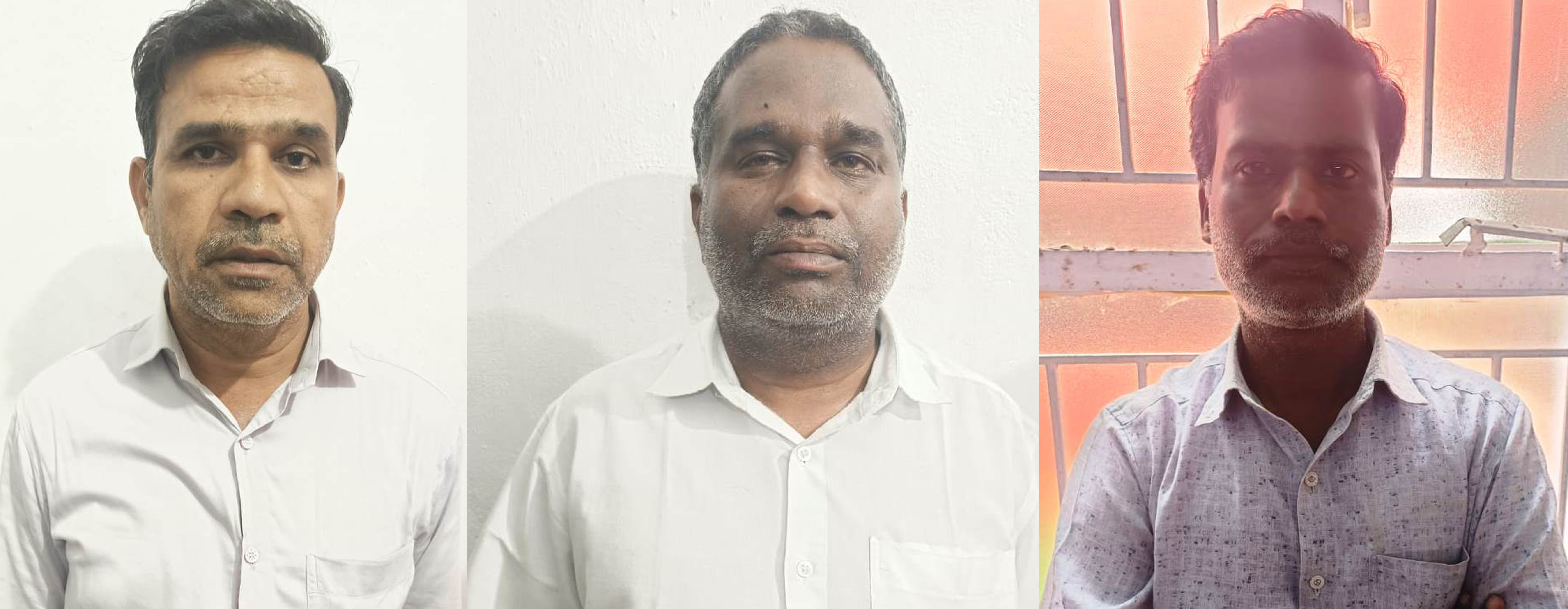 திருத்தணி அடுத்த ஆர்கே பேட்டையில் போலீஸ் ஸ்டேஷனின் போலியான ரப்பர் ஸ்டாப் மூலம் தடையில்லா சான்றிதழ் பெற்று ரூ.1 கோடியே 29 லட்சம் மதிப்பிலான சொத்துக்களை விற்பனை செய்ததாக கொடுத்த புகாரில் மூன்று பேர் கைது