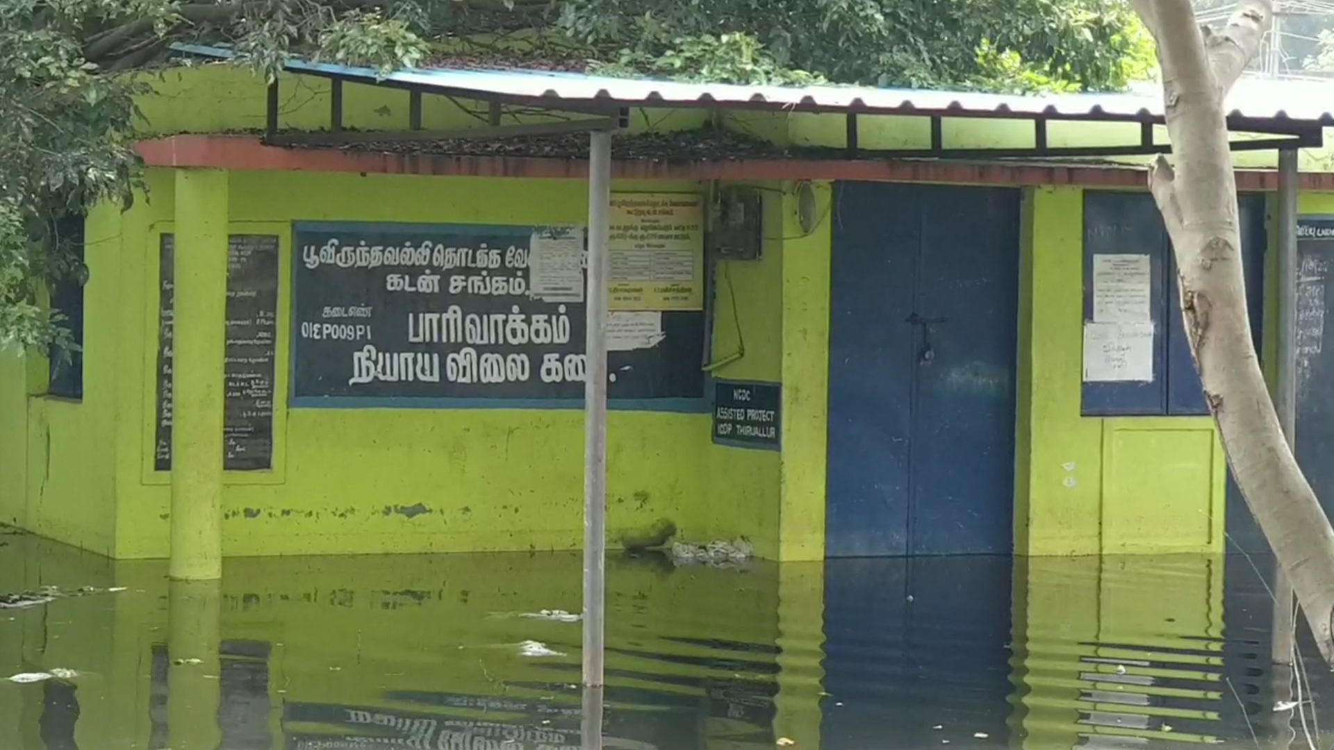 பூந்தமல்லி அடுத்த பாரிவாக்கம் ஊராட்சியில் கடந்த 4 நாட்களாக தண்ணீரில் மூழ்கியுள்ள நியாய விலை கடை : அத்தியாவசிய பொருட்களை வாங்க முடியாமல் மக்கள் கடும் அவதி