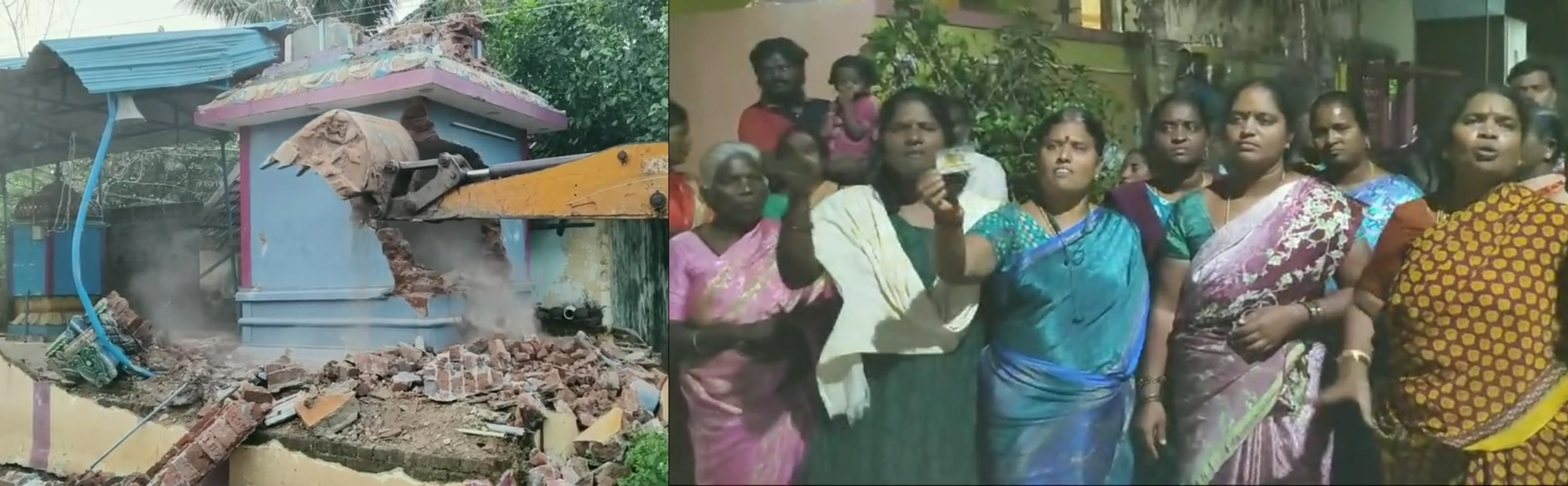 புல்லரம்பாக்கத்தில் கிருஷ்ணன் கோயிலில் இருந்த கிருஷ்ணர், ராதா, ருக்மணி, விநாயகர் சிலைகள் நேற்று நள்ளிரவு அகற்றம்: கோயிலை இடித்து தரைமட்டம் ஆக்கியதால் கிராமத்தில் பதற்றமான சூழ்நிலை :