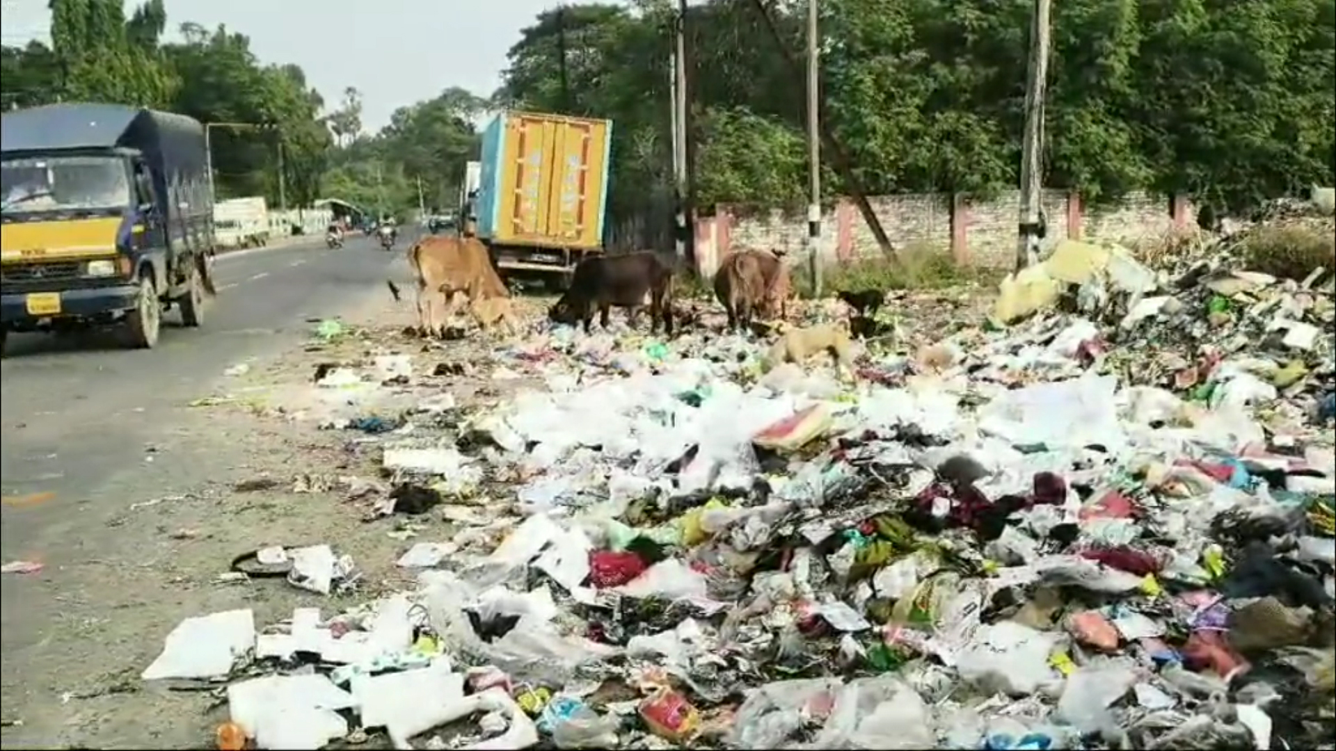 திருவள்ளூர் அடுத்த காக்களூர் தொழிற்பேட்டை அருகே சாலை ஓரத்தில் கொட்டப்பட்டுள்ள குப்பை கழிவுகளால் துர்நாற்றம் : ஊராட்சி நிர்வாகம் கண்டு கொள்ளாததால் பொதுமக்கள் அவதி :