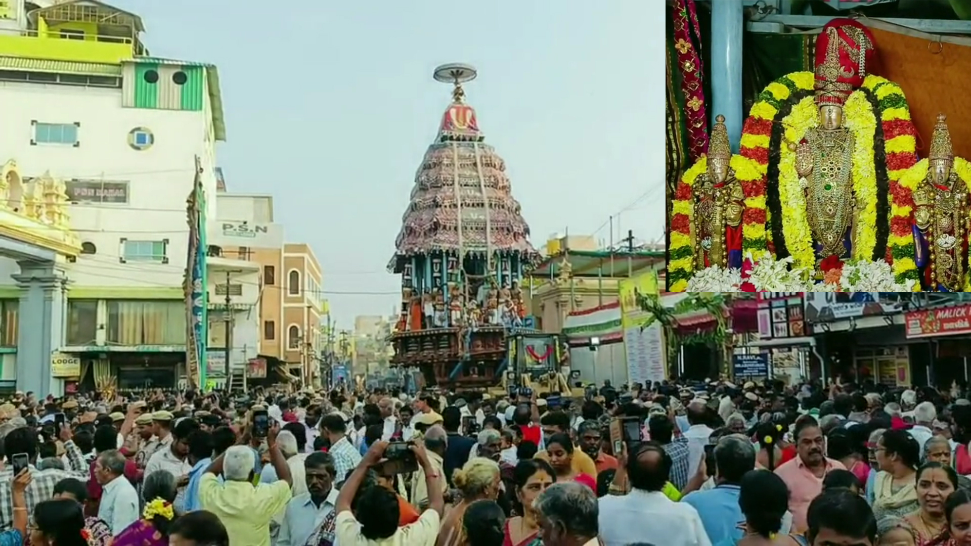 தை மாத பிரம்மோற்சவ விழாவை முன்னிட்டு திருவள்ளூர் ஸ்ரீ வைத்திய வீரராகவப் பெருமாள் கோவில் தேர் திருவிழா : நான்கு மாட வீதிகள் வழியாக வீரராகவர் ஸ்ரீதேவி பூதேவியுடன் வலம் வந்தார் :