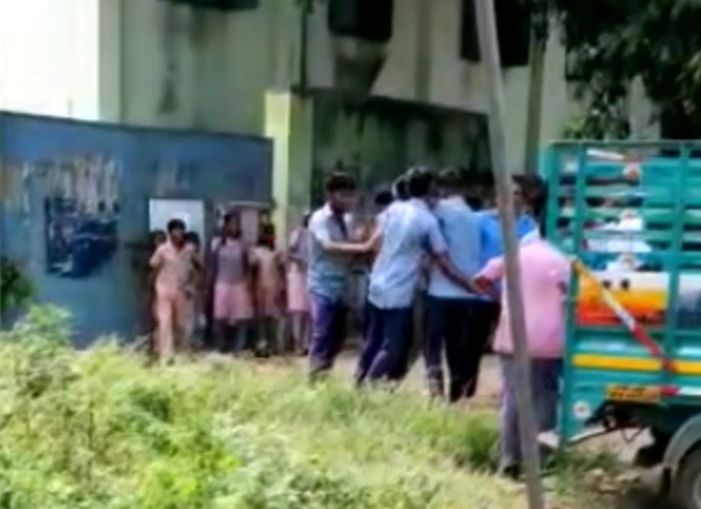 கே.ஜி.கண்டிகையில் படியில் பயணம் செய்த மாணவர்களை உள்ளே வர சொன்ன அரசு பஸ் ஓட்டுனர் மற்றும் நடத்துனர் மீது பள்ளி மாணவர்கள் தாக்கிய சம்பவத்தால் பரபரப்பு