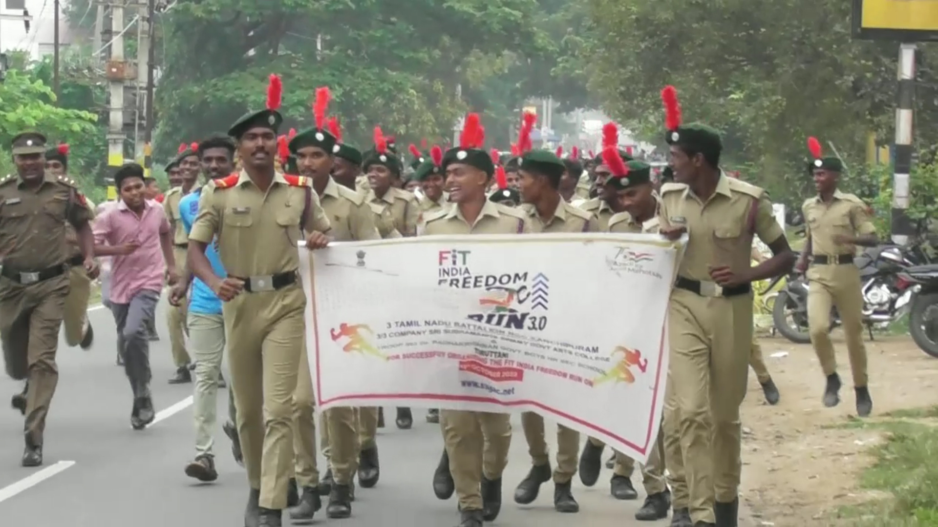 திருத்தணியில் உடற்பயிற்சி செய்வதை கட்டாயமாக்கி கொள்ள வேண்டும் என்பதை வலியுறுத்தி என்.சி.சி. மாணவர்களின் விழிப்புணர்வு ஒற்றுமை ஓட்டம்