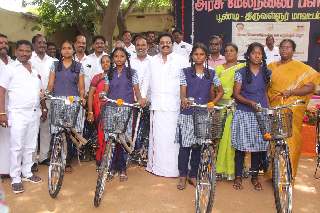 திருவள்ளூர் அடுத்த பூண்டி அரசு மேல் நிலைப் பள்ளியில் 80 மாணவிகளுக்கு விலையில்லா மிதிவண்டிகள் : திருவள்ளூர் எம்.எல்.ஏ., வி.ஜி.ராஜேந்திரன் வழங்கினார்