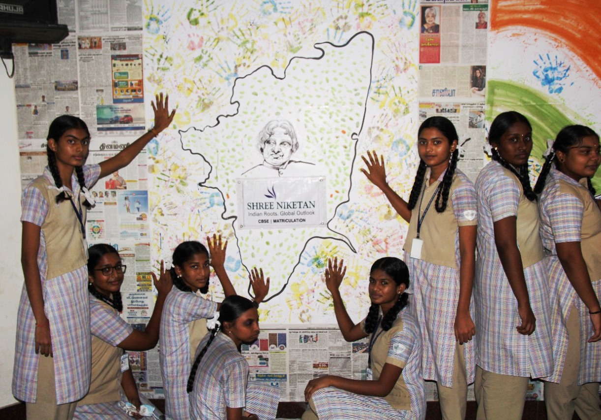 திருவள்ளூர் ஸ்ரீ நிகேதன் மெட்ரிக் மேல்நிலைப் பள்ளியில் டாக்டர் அப்துல் கலாம் வருகை புரிந்த 9-ஆம் ஆண்டு நினைவு கூறும் வகையில் அவரது 9- அடி உயரமான படத்தை வரைந்து மரியாதை
