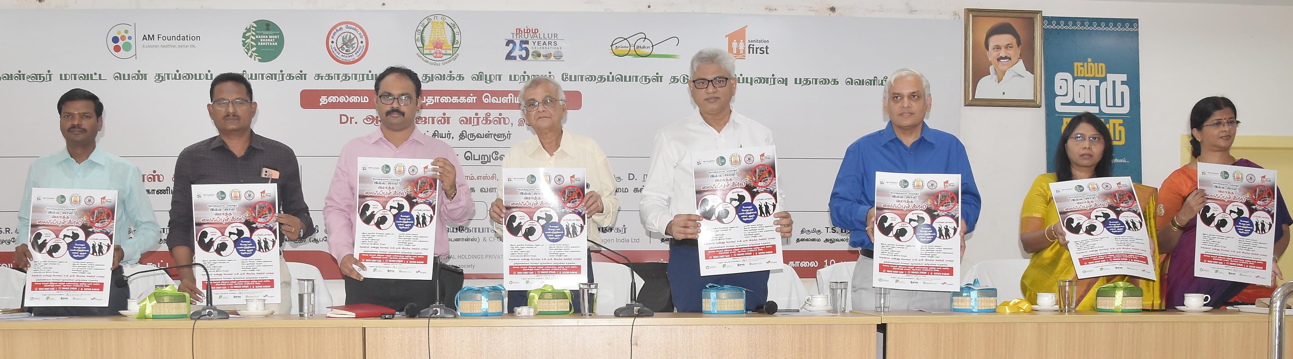 திருவள்ளூர் மாவட்ட பெண் தூய்மை பணியாளர்களுக்கான சுகாதார பயிற்சி துவக்கம் மற்றும் போதைப்பொருள் தடுப்பு விழிப்புணர்வு பதாகை வெளியீட்டு விழா