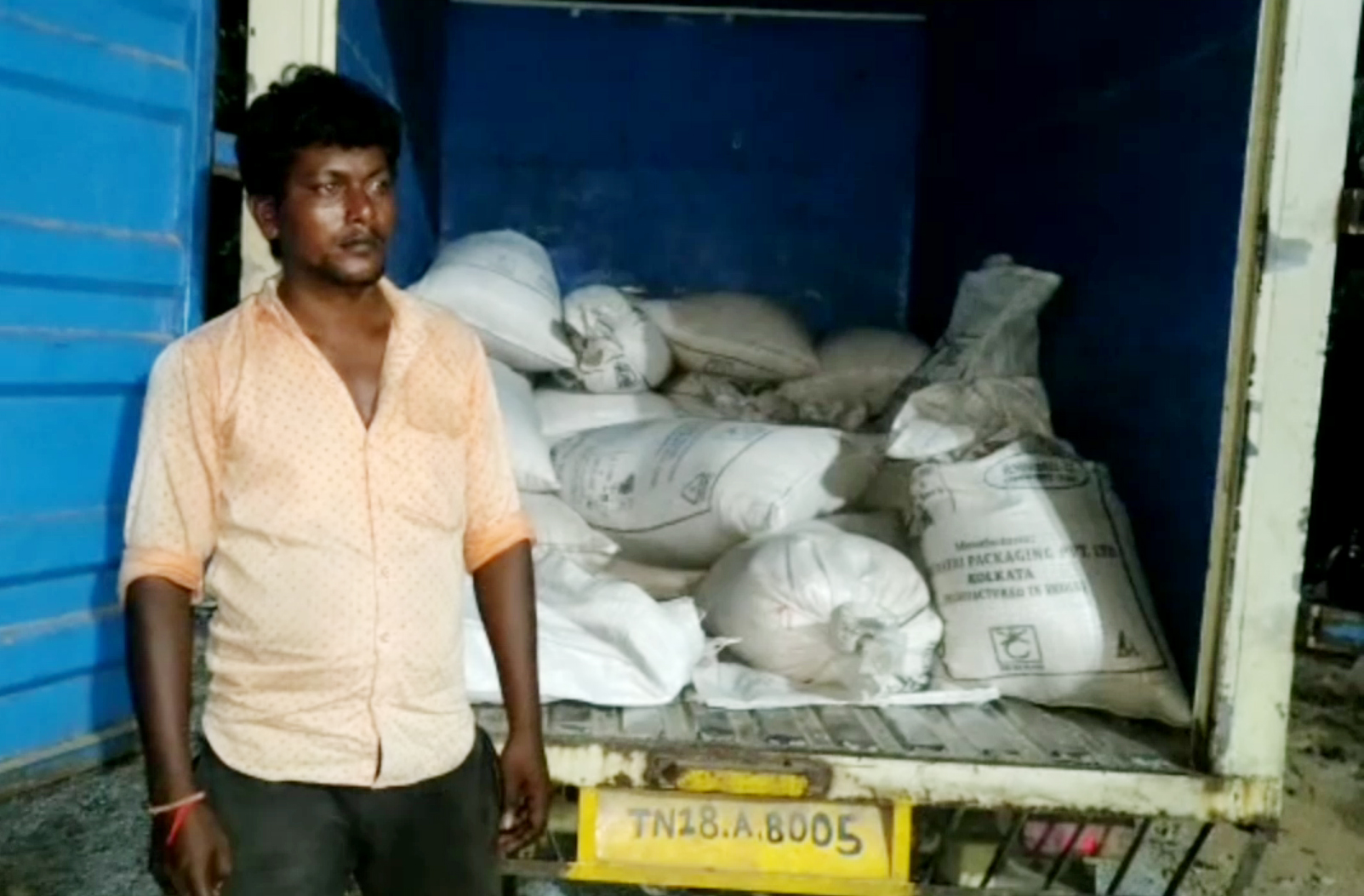 கனகம்மா சத்திரத்திலிருந்து ஆந்திராவிற்கு பால் வேனில் கடத்த முயன்ற ஒரு டன் ரேஷன் அரிசி பறிமுதல் : ஒருவரை போலீசார் கைது :