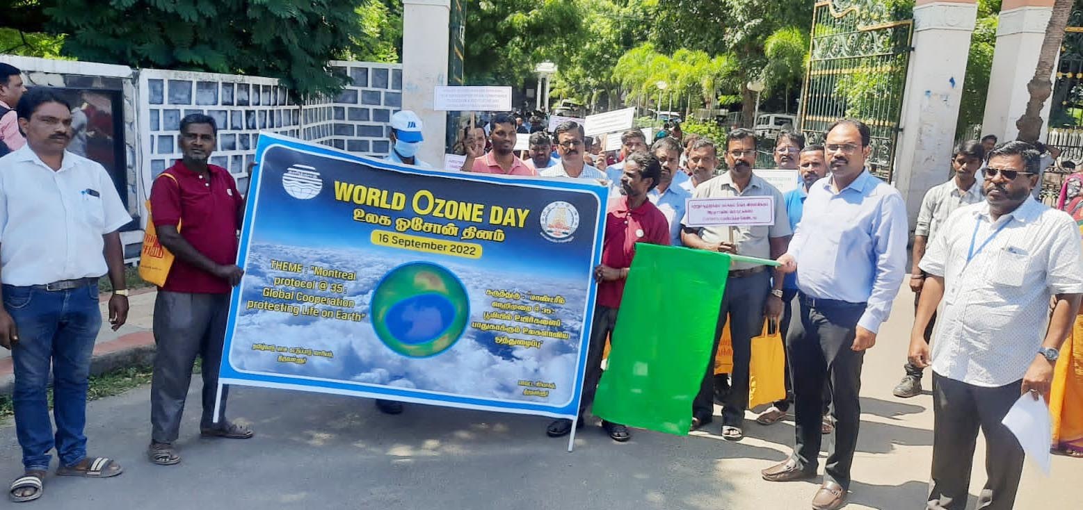 திருவள்ளூரில் ஓசோன் படலத்தை பாதுகாப்பதற்கான வழிமுறைகள் குறித்த விழிப்புணர்வு மிதிவண்டி மற்றும் நடை பேரணி : மாவட்ட ஆட்சியர் ஆல்பி ஜான் வர்கீஸ் கொடியசைத்து துவக்கி வைத்தார் :