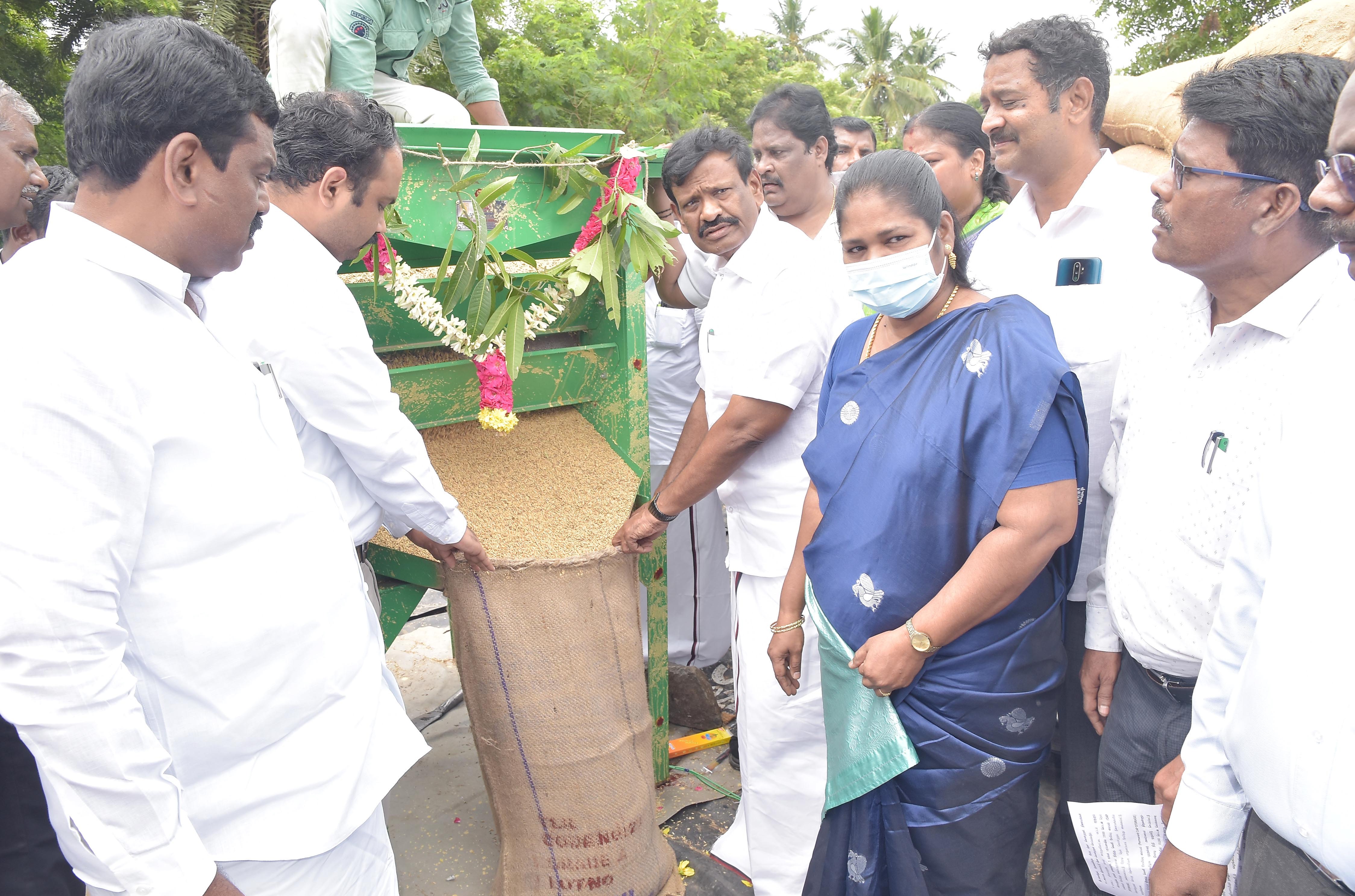 திருவள்ளுர் அடுத்த வெள்ளியூரில் நேரடி நெல் கொள்முதல் நிலையம் : பால்வளத்துறை அமைச்சர் சா.மு.நாசர் திறந்து வைத்தார் :
