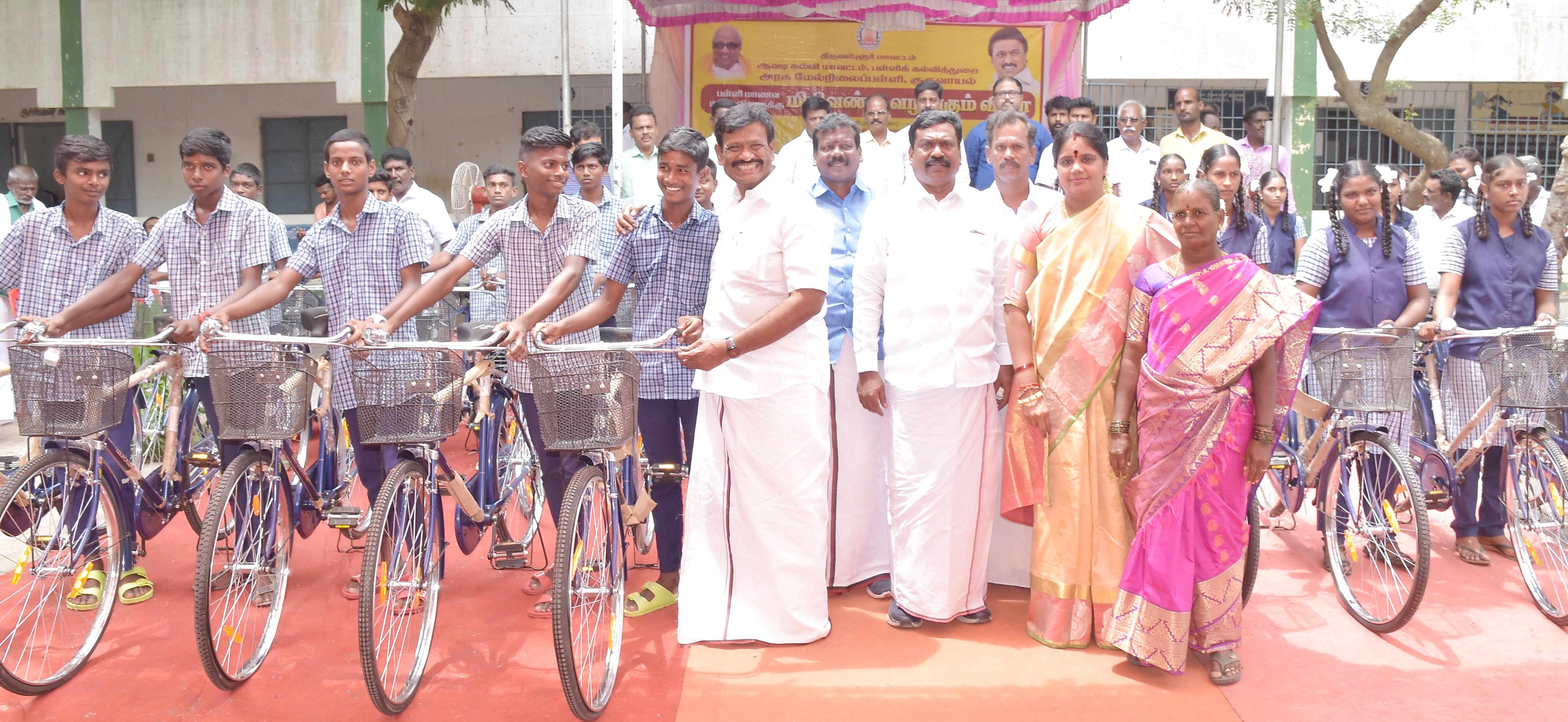 குருவாயல் அரசினர் மேல்நிலைப் பள்ளியில் 80 மாணவ மாணவியர்களுக்கு இலவச மிதிவண்டிகள் : பால்வளத்துறை அமைச்சர் சா.மு.நாசர் வழங்கினார்