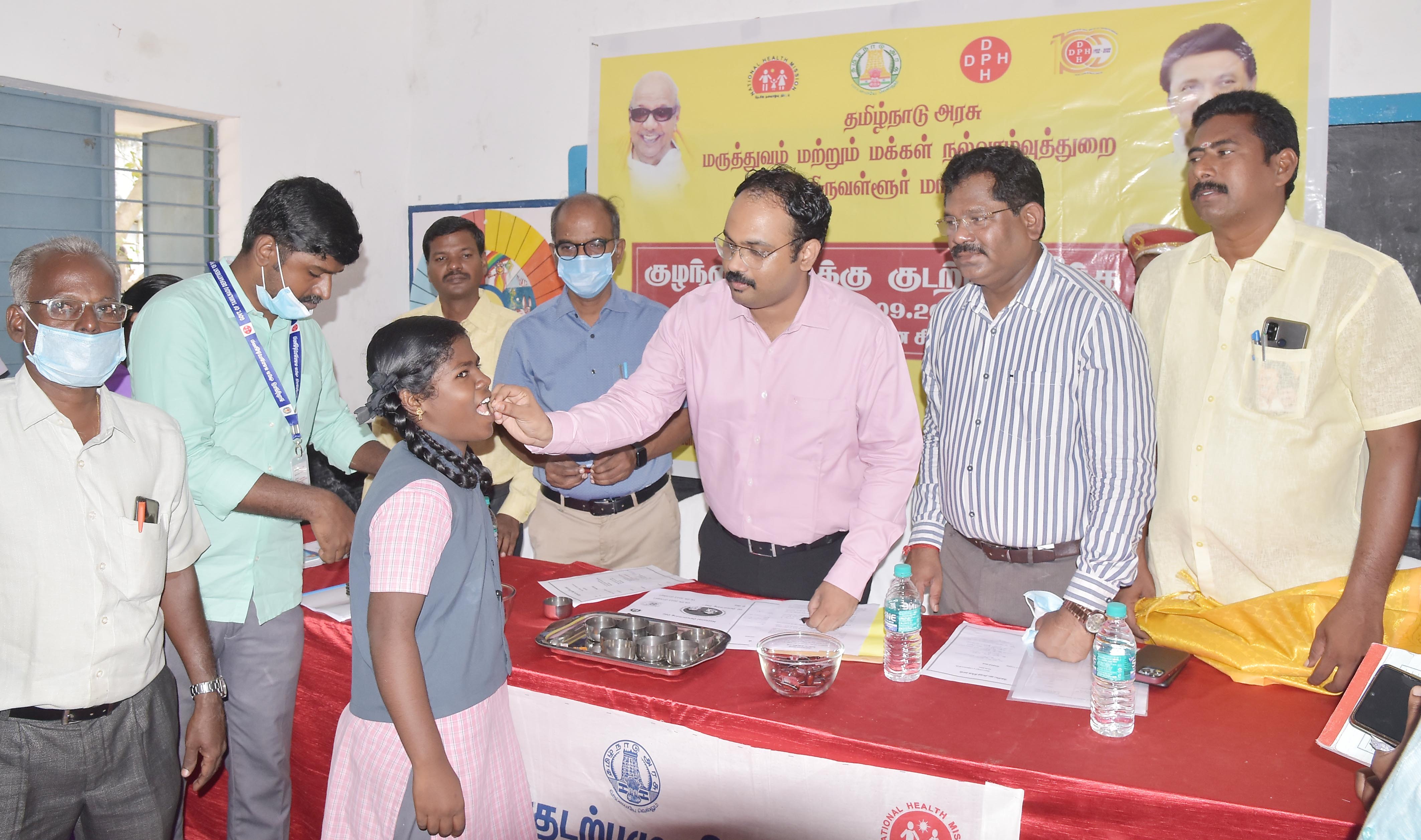 திருப்பாச்சூர் அரசு உயர்நிலைப்பள்ளியில் தேசிய குடற்புழு நீக்க தினத்தை முன்னிட்டு மாணவ மாணவிகளுக்கு அல்பெண்டசோல் மாத்திரைகள் : மாவட்ட ஆட்சியர் ஆல்பி ஜான் வர்கீஸ் வழங்கினார் :