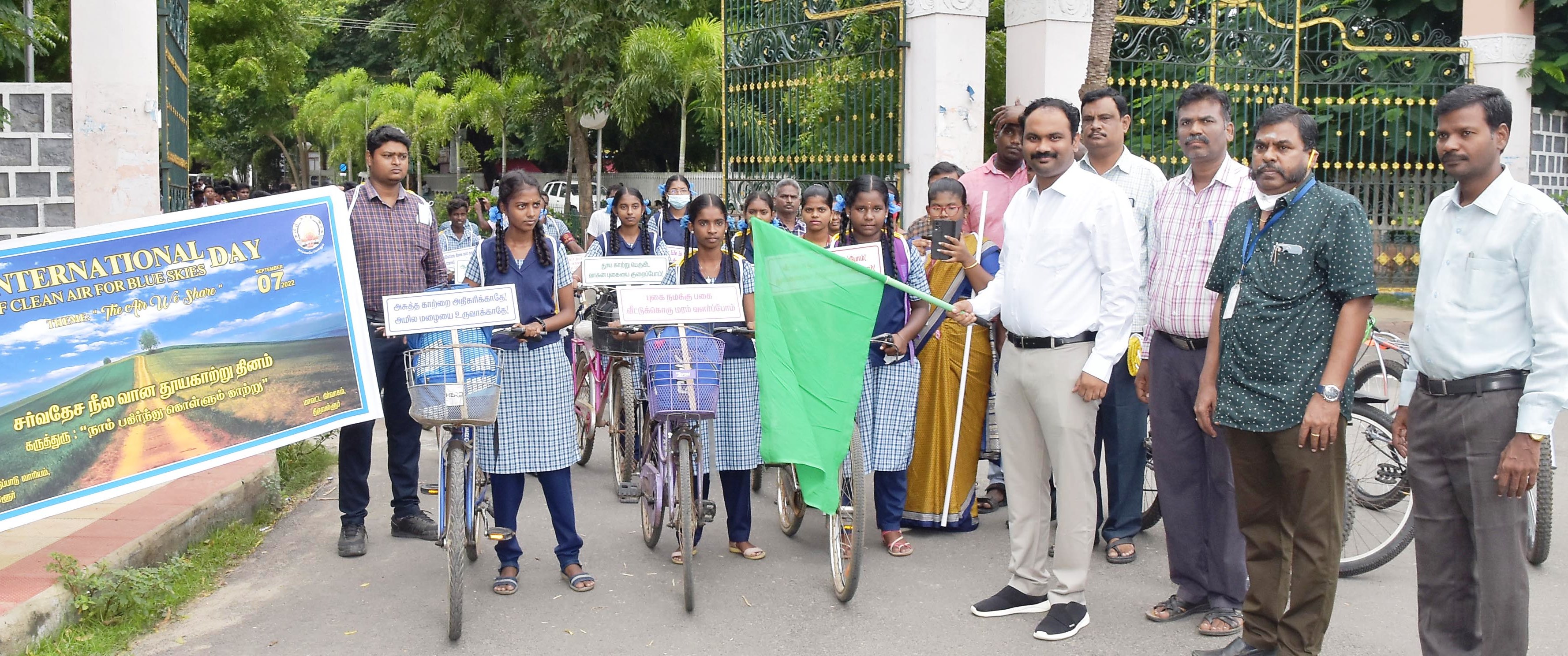 திருவள்ளூரில் சர்வதேச நீல வான தூய காற்று தினத்தை முன்னிட்டு மிதிவண்டி விழிப்புணர்வு பேரணி : மாவட்ட ஆட்சியர் ஆல்பி ஜான் வர்கீஸ் துவக்கி வைத்தார் :