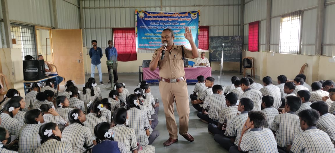 காக்களூர் ஊராட்சியில் சாலை விதிமுறைகள் குறித்து பள்ளி மாணவர்களிடையே விழிப்புணர்வு கலந்துரையாடல் நிகழ்ச்சி :