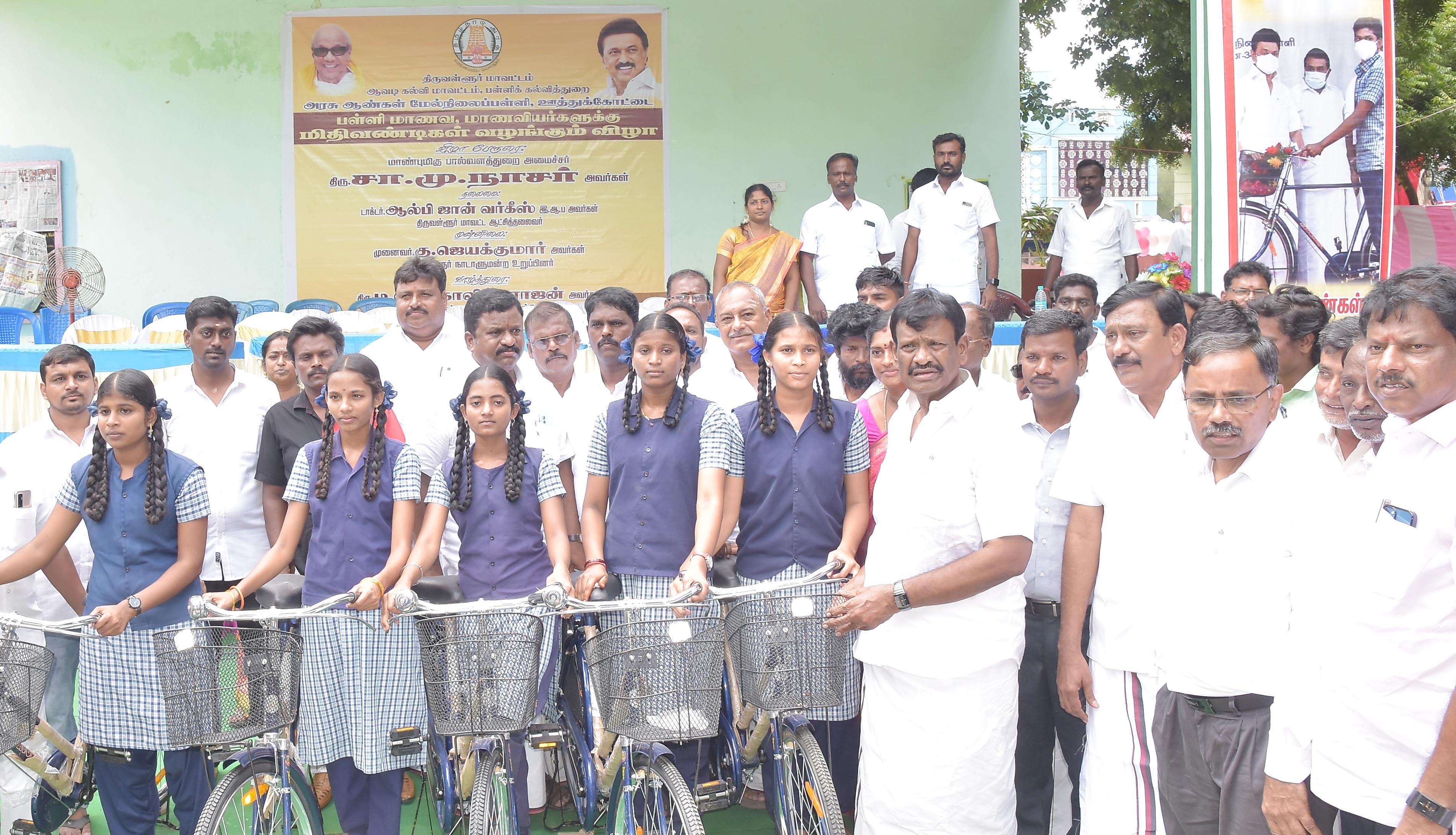 ஊத்துக்கோட்டை அரசினர் ஆண்கள் மேல்நிலைப் பள்ளியில் 500 மாணவ மாணவியர்களுக்கு இலவச மிதிவண்டிகள் : பால்வளத்துறை அமைச்சர் சா.மு.நாசர் வழங்கினார் :