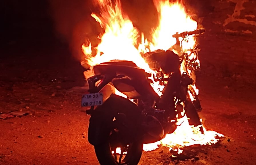 திருவள்ளூரில் சாலையில் சென்று கொண்டிருந்த டூ வீலர் திடீரென தீப்பிடித்து எரிந்ததால் பரபரப்பு :