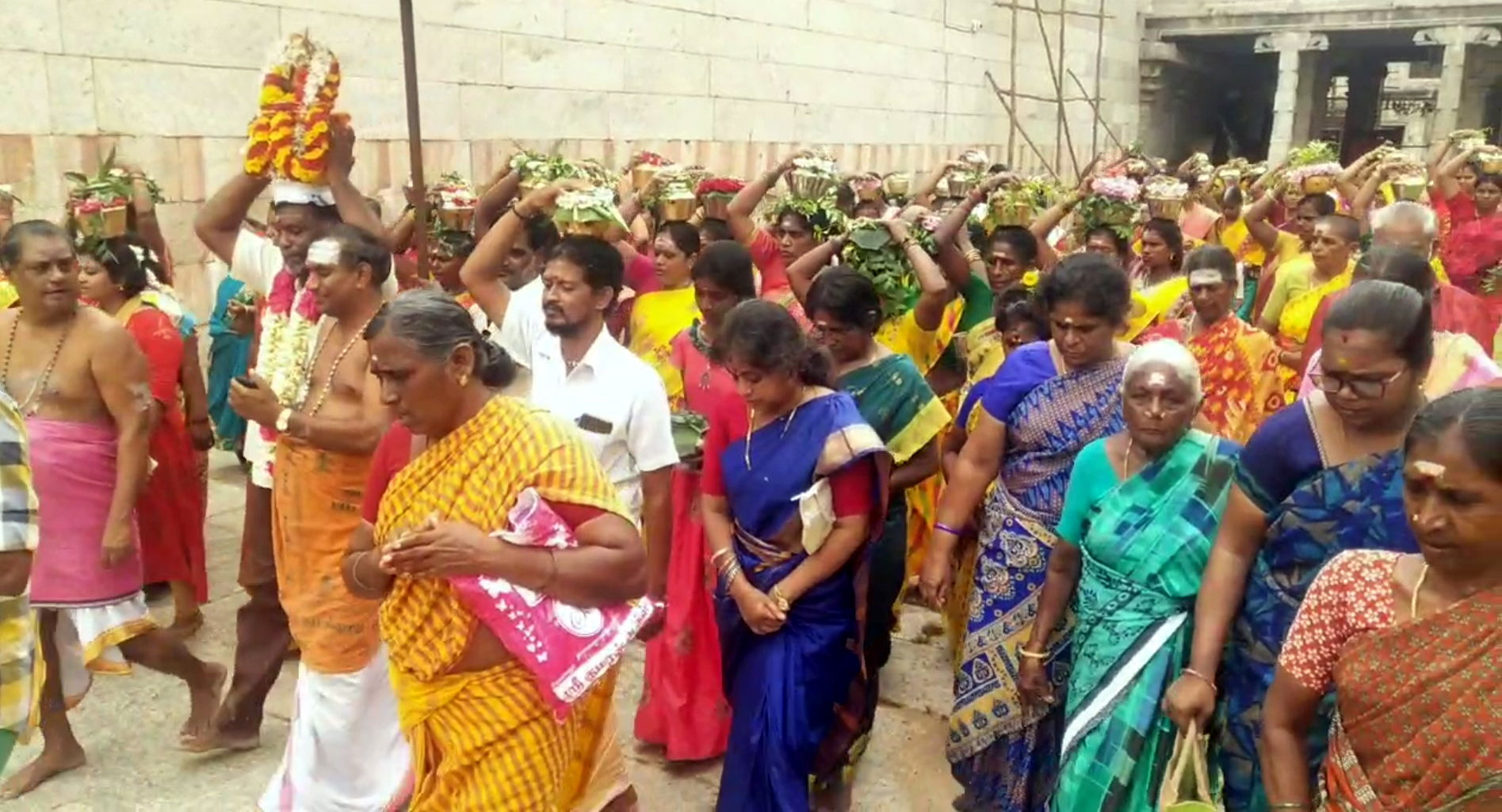 திருவாலங்காடு பத்ரகாளியம்மனுக்கு பால்குடம் எடுத்து பெண்கள் பூஜை :