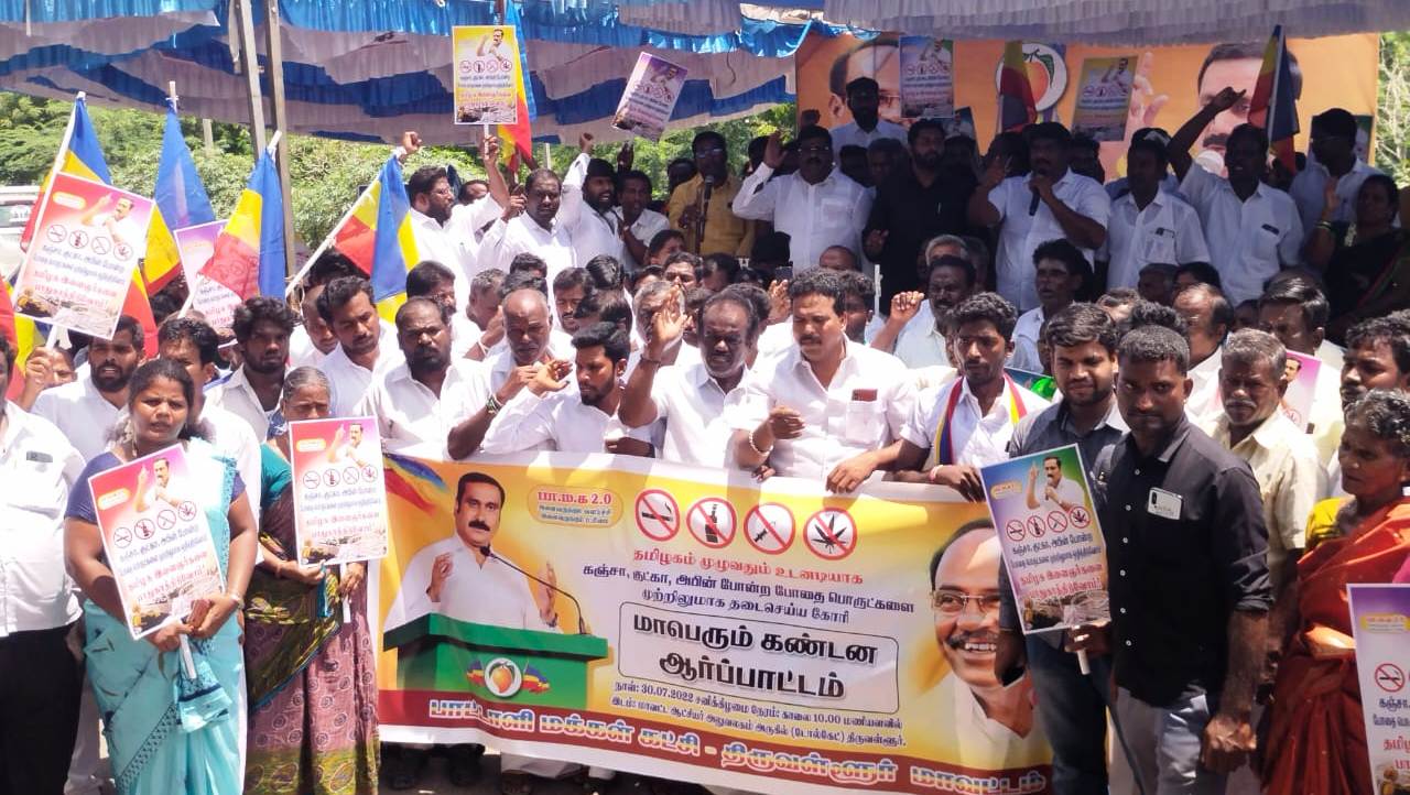திருவள்ளூர் மாவட்ட பாமக சார்பில் கஞ்சா,குட்கா,அபின் போன்ற போதை பொருட்களை தடைசெய்ய கோரி ஆர்ப்பாட்டம் :