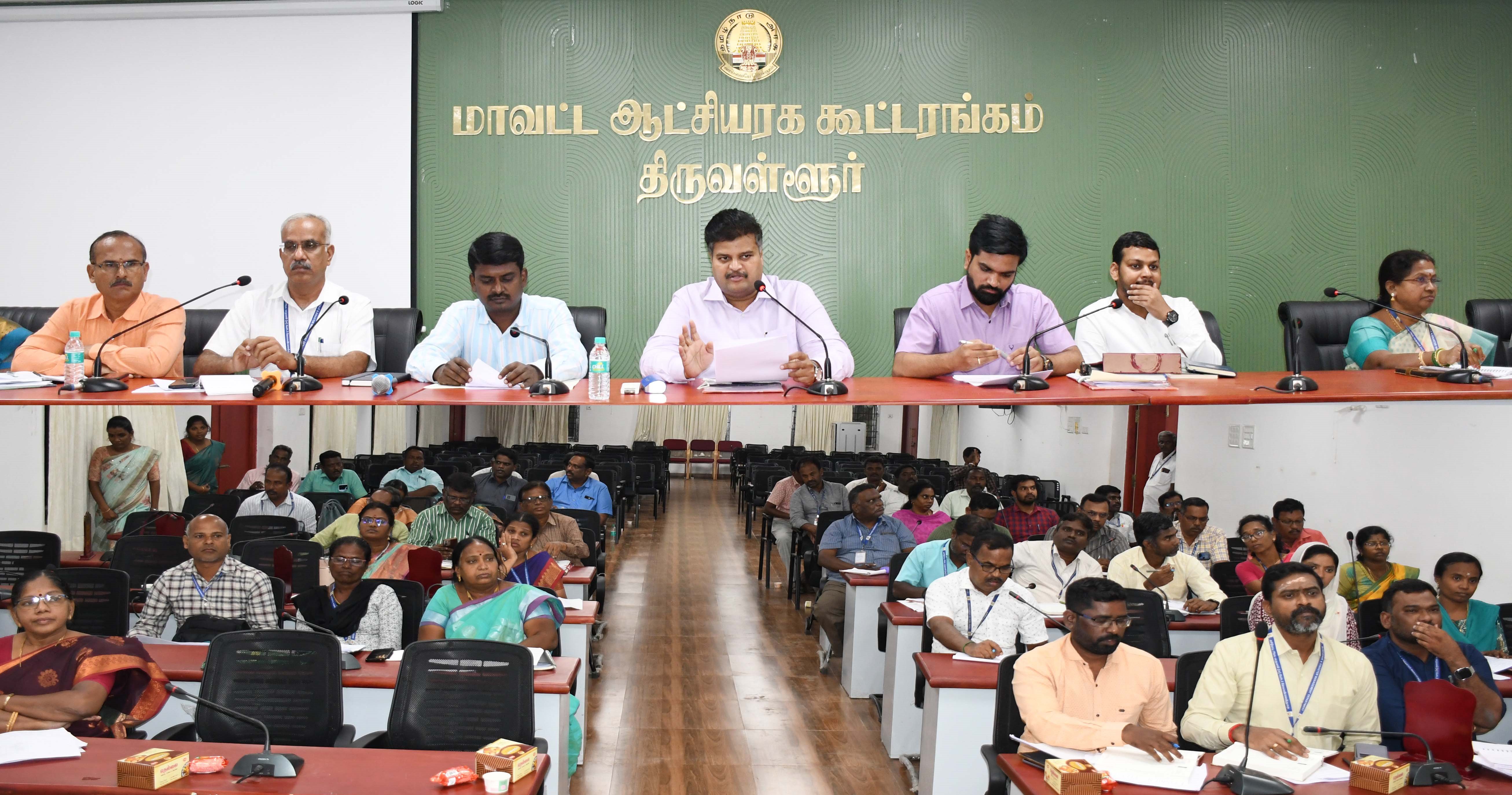 திருவள்ளூர் மாவட்ட ஆட்சியர் அலுவலக கூட்டரங்கில் அரசு திட்டங்கள் குறித்து அனைத்து துறை அலுவலர்களுடன் ஆய்வு கூட்டம் :