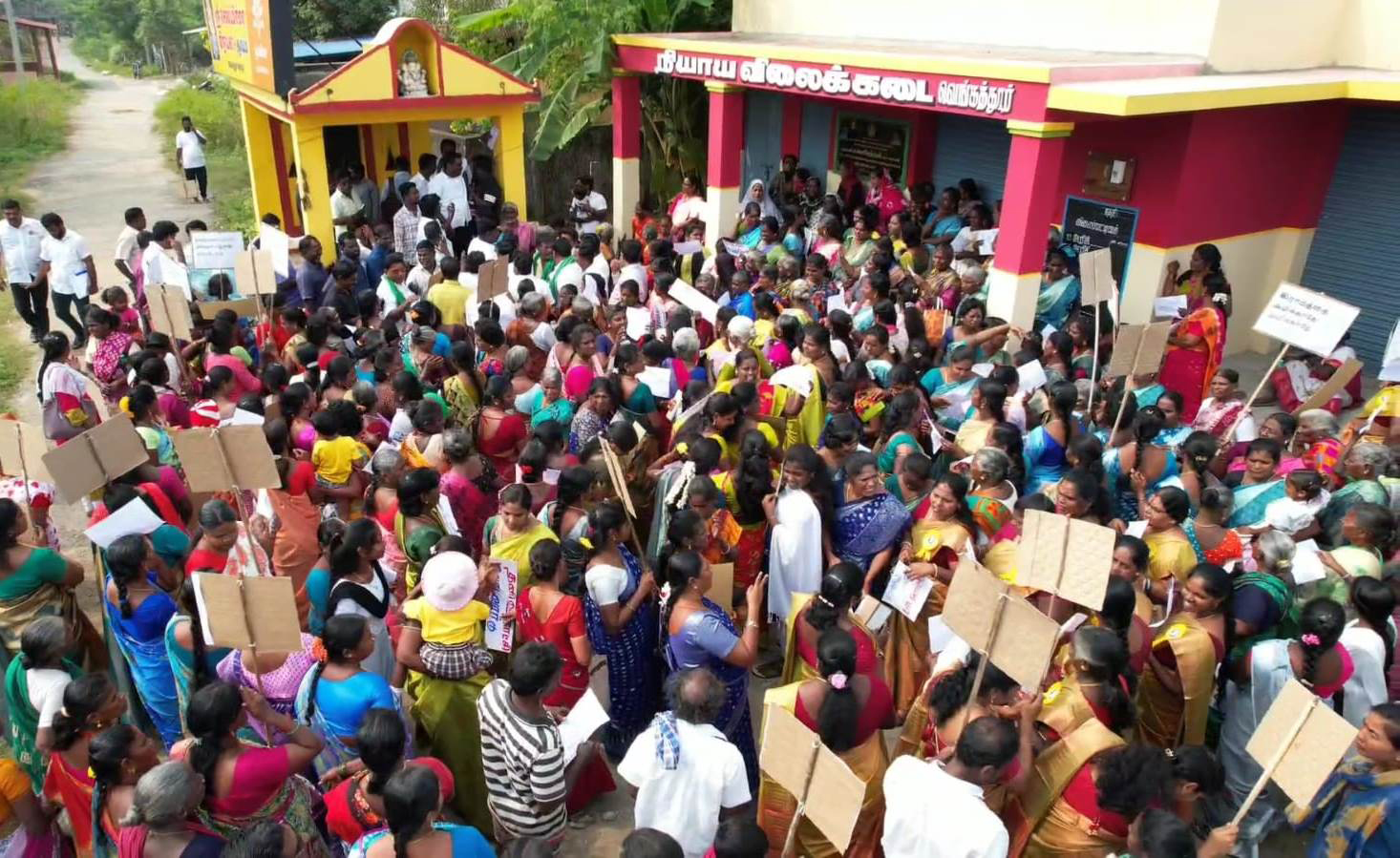 வெங்கத்தூர் ஊராட்சி 15-வது வார்டை தனி ஊராட்சியாக அறிவிக்க வலியுறுத்தல் : பொங்கல் தொகுப்பை வாங்க மறுத்து 1000-க்கும் மேற்பட்ட கிராம மக்கள் நியாய விலை கடையை முற்றுகையிட்டு ஆர்ப்பாட்டம் :