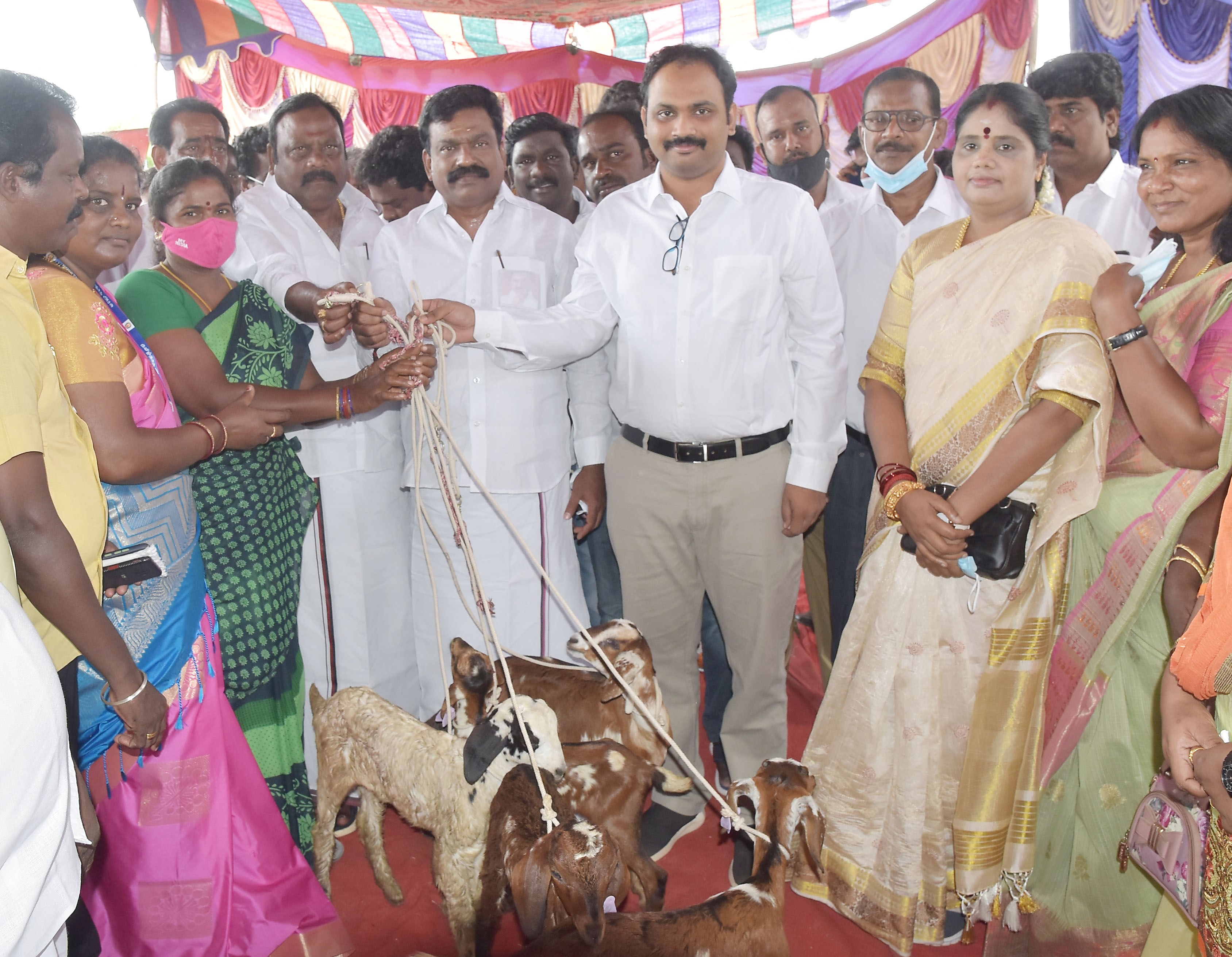 புதுசத்திரம் பகுதியில் 100 பயனாளிகளுக்கு ரூ.19 லட்சம் மதிப்பில் இலவச வெள்ளாடுகள் : மாவட்ட ஆட்சியர் ஆல்பி ஜான் வர்கீஸ் வழங்கினார்