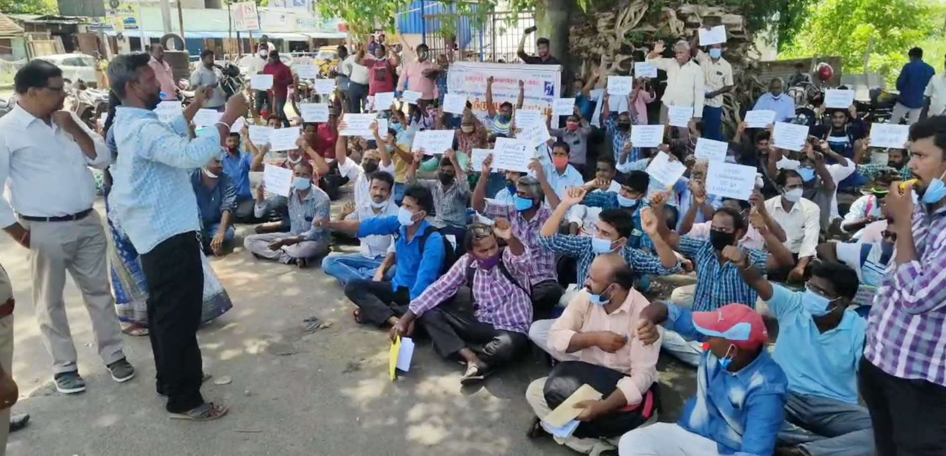 திருத்தணி அடுத்த ஆர் கே பேட்டை பெண் தாசில்தார், வருவாய் ஆய்வாளர், வி.ஏ.ஓ மற்றும் 10 பெண் காவலர்களை கற்களால் தாக்கியவர்களை கைது செய்ய வலியுறுத்தி திருவள்ளூர் மற்றும் திருத்தணியில் வருவாய்த்துறையினர் கண்டன ஆர்ப்பாட்டம்