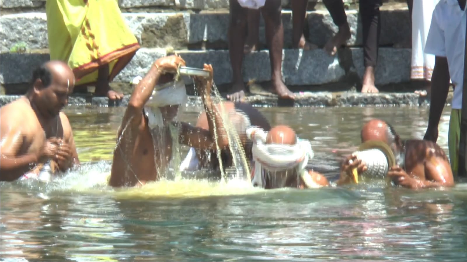 மரகதவல்லி தாயார் சமேத ஸ்ரீ லட்சுமி நரசிம்ம சுவாமி கோவிலில் ஆனி மாத பிரம்மோற்சவ தீர்த்தவாரி : ஏராளமான பக்தர்கள் கோவில் குளத்தில் நீராடி சாமி தரிசனம்