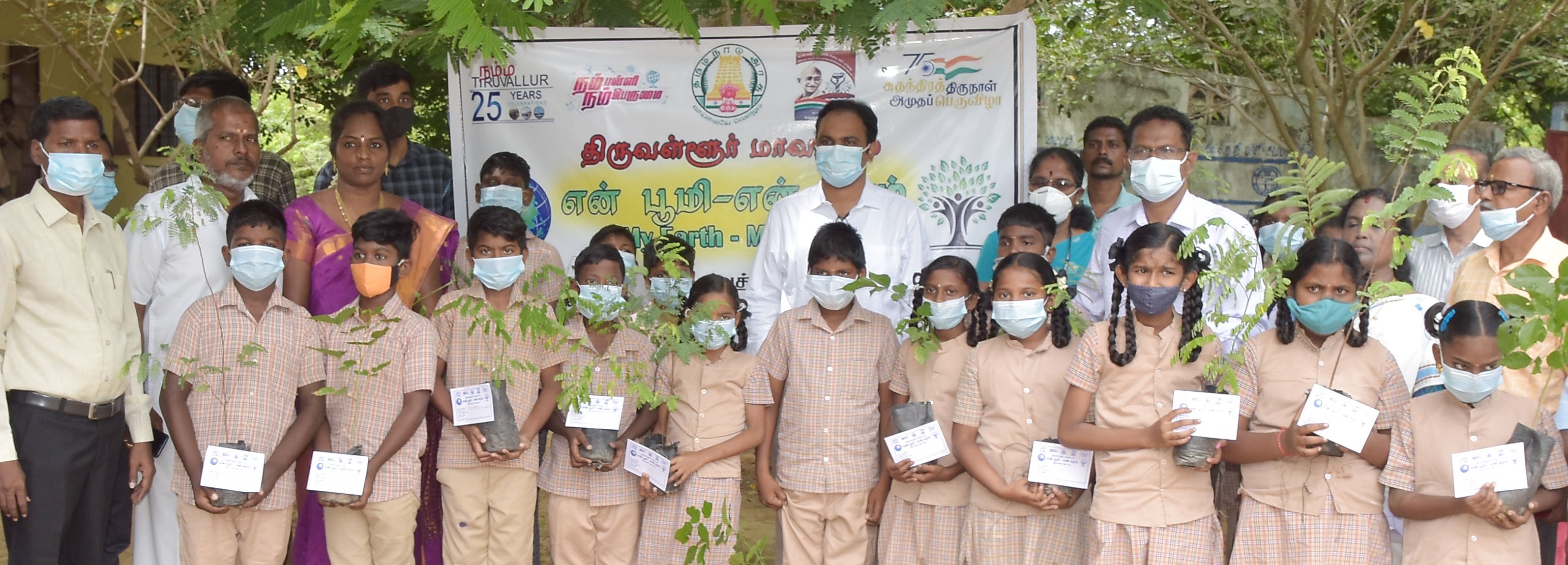 கடம்பத்தூர் ஊராட்சி ஒன்றிய தொடக்கப்பள்ளி வளாகத்தில் “என் பூமி - என் மரம்” என்ற திட்டத்தின் கீழ் மாணவ, மாணவியர்களுக்கு 75 ஆயிரம் மரக்கன்றுகள் பராமரிப்பதற்கான அட்டைகள் : மாவட்ட ஆட்சியர் ஆல்பி ஜான் வர்கீஸ் வழங்கினார்