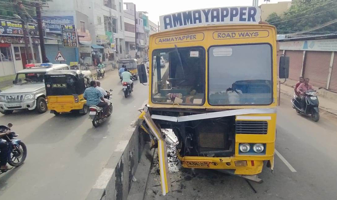திருவள்ளூர் டிஎஸ்பி அலுவலகம் எதிரில் சாலை தடுப்பு சுவரில் சிமெண்ட் கலவை லாரி மோதி விபத்து : 4 மணி நேரம் போக்குவரத்து பாதிப்பு