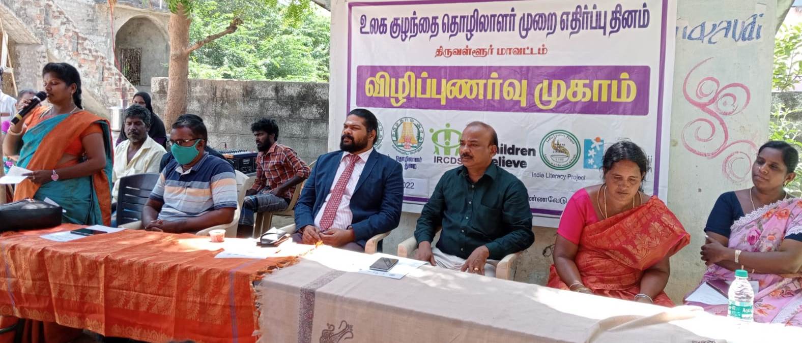 மொண்ணவேடு கிராமத்தில் ஐ.ஆர்.சி.டி.எஸ் தொண்டு நிறுவனம் சார்பில் உலக குழந்தை தொழிலாளர் முறை எதிர்ப்பு தினத்தை முன்னிட்டு விழிப்புணர்வு முகாம்