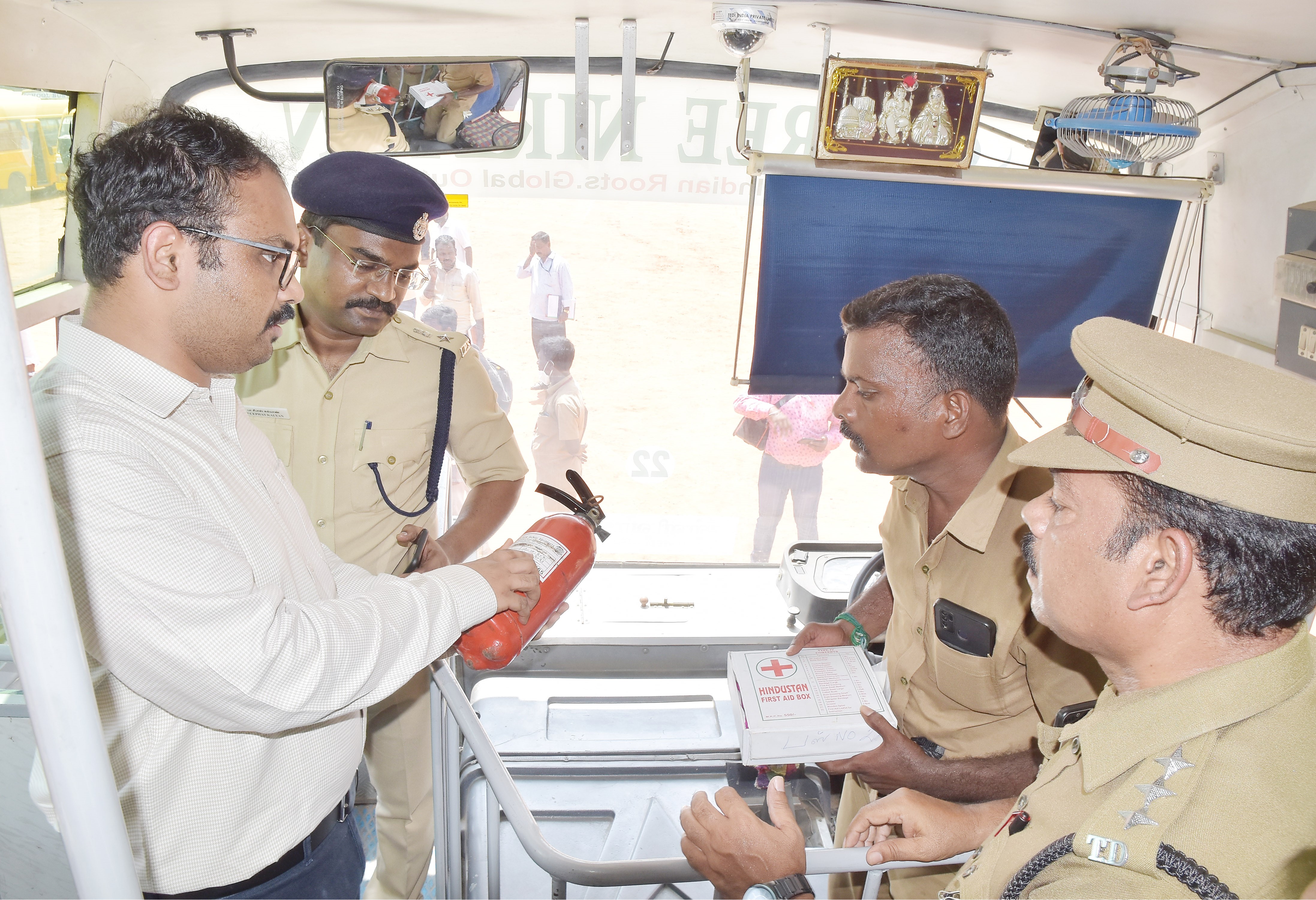 திருத்தணி மற்றும் பள்ளிப்பட்டு வட்டத்திற்குட்பட்ட அனைத்து கல்வி நிறுவன வாகனங்களை மாவட்ட ஆட்சியர் ஆல்பி ஜான் வர்கீஸ் நேரில் ஆய்வு